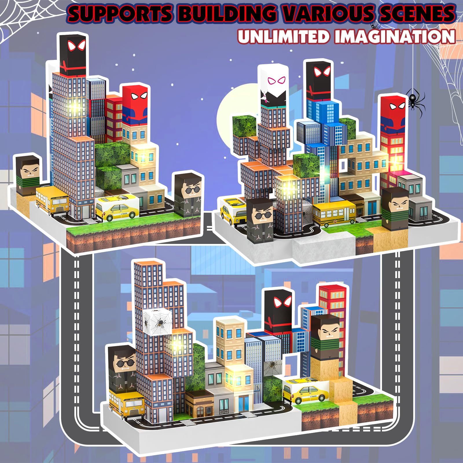 YUNGOWN Magnetic Blocks Building Toys Set, Spider Toys Light Up Magnetic Building Blocks for Boys Girls Ages 3+, Magnet Cubes ST