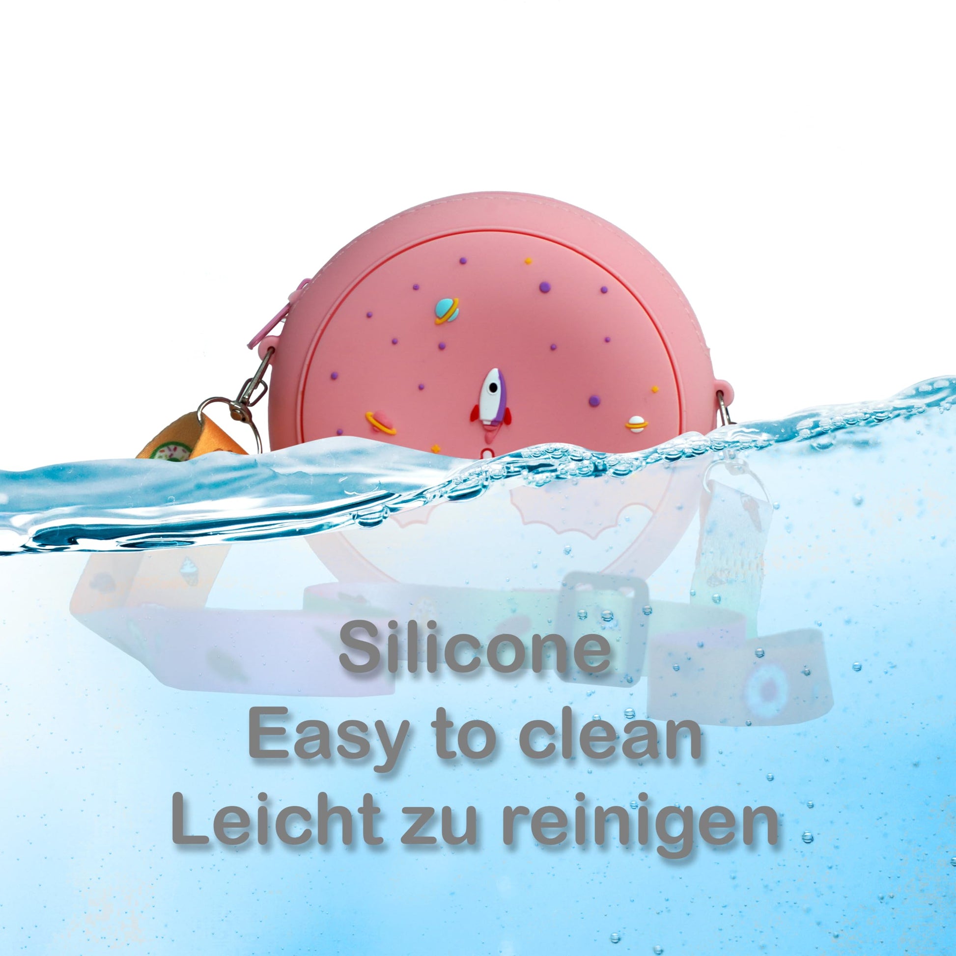 This is a little toy purse with a starting rocket for all kids, girls and boys, who want to fly to the moon in kindergarden age. The small bag can be closed by a zipper and is held with an adjustable strap. The material is silicone, which allows the children to play with it at will. Later the bag can be easily cleaned with a somewhat wet cloth. The bags come in pink rose and dark blue color. The small toy purses are intended as little gifts for girls as presents for birthdays, first day in pre school, to put braces or various girlie treasures. The creative bags also make for great wrapping or packaging of other smal gifts, as a colorful add on that the kids can open and unwrap, basically receiving 2 gifts in 1. The spacy purses have also been known to be used in costumes or dress up occassions like carneval or kindergarten events. Bring a smile and every day gift to the little ones in spring and summer 2024. [Delivery scope] ? One small silicone toy bag brand CONTRACONTACT in a gift box, with strap ? Patterns: Various, please also check the pictures ? Size: diameter 4.7 inches x 1.8 in height ? Weight: 3.88 oz Feel free to contact us any time for additional questions. Thank you very much for your interest in CONTRACONTACT. We wish You much fun and big smiles with the little kids gift purse.