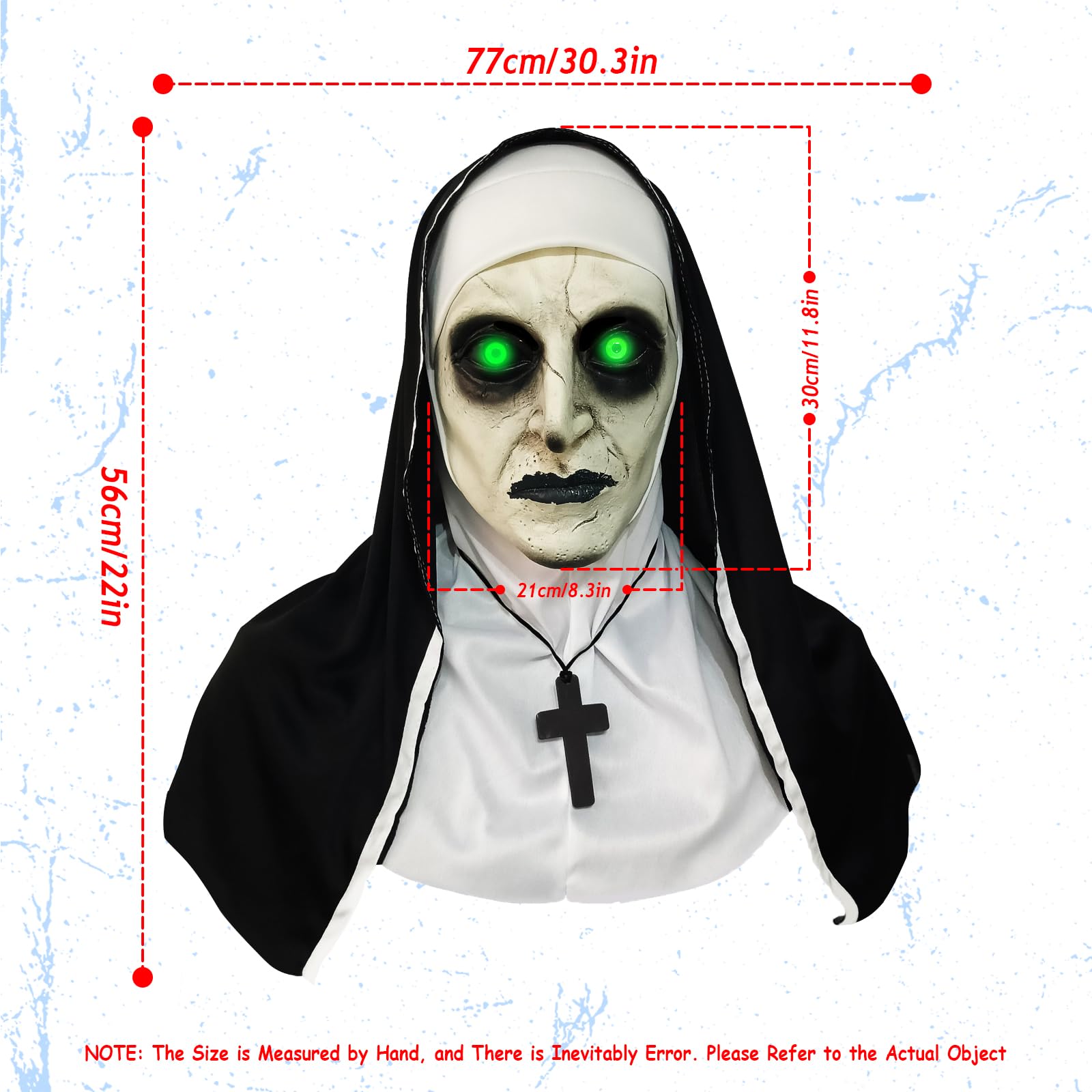 lewexiison 2024 Nun Scary Mask,Halloween Party Scary Full Head Costume Mask with cross necklace,Shut Up Lights