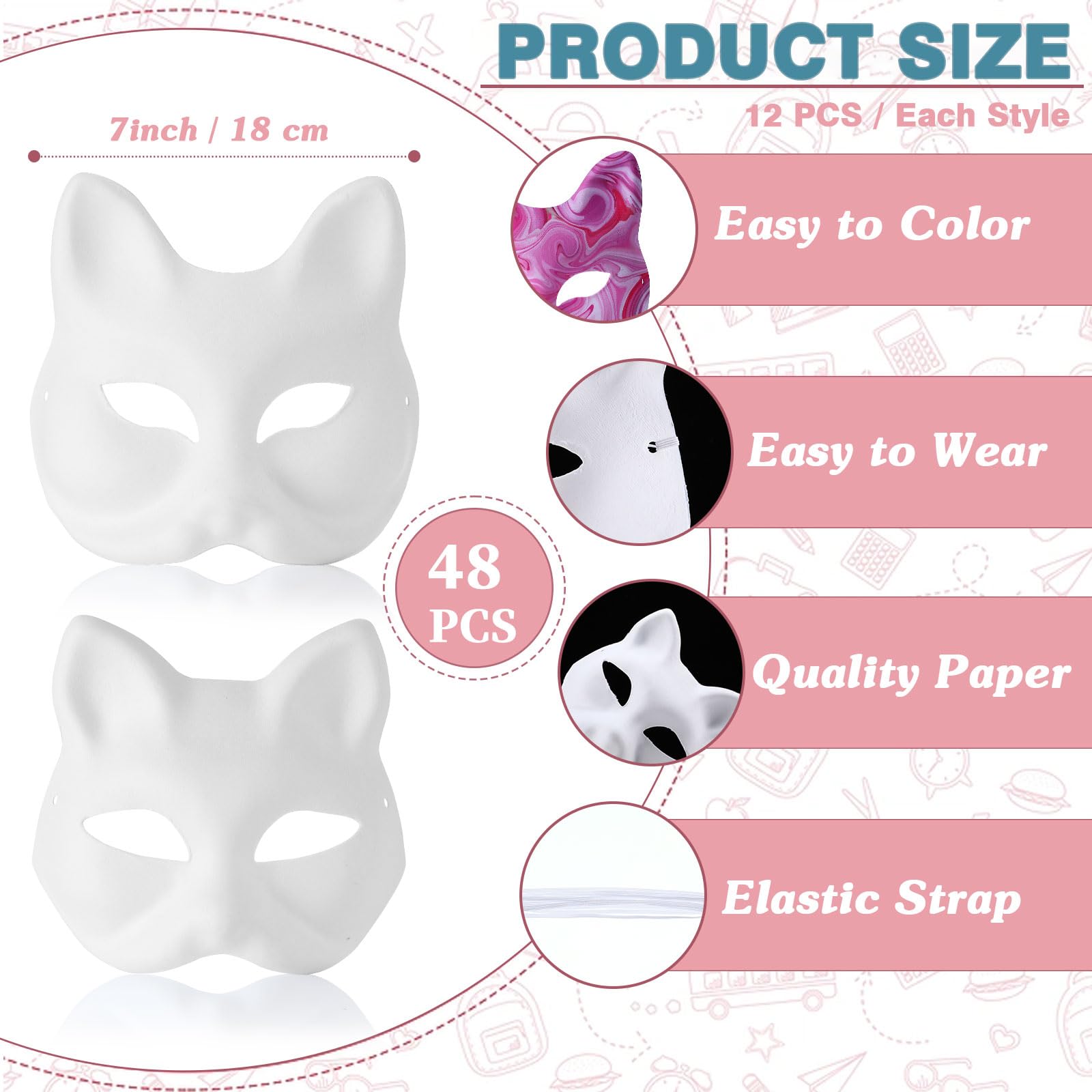 - Q: How many masks are included in a package? A: Each package includes 48 plain masquerade masks, providing a sufficient quantity for art classes, craft activities, or as costume accessories for parties.