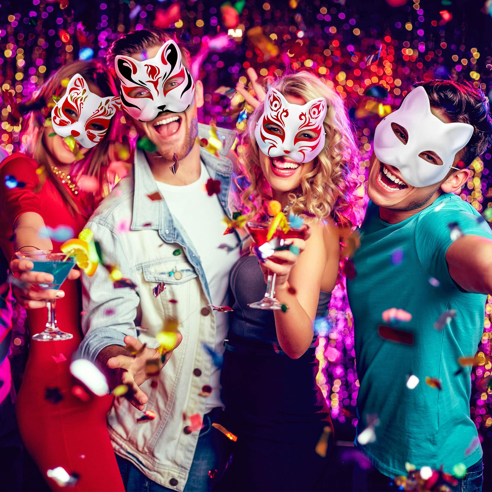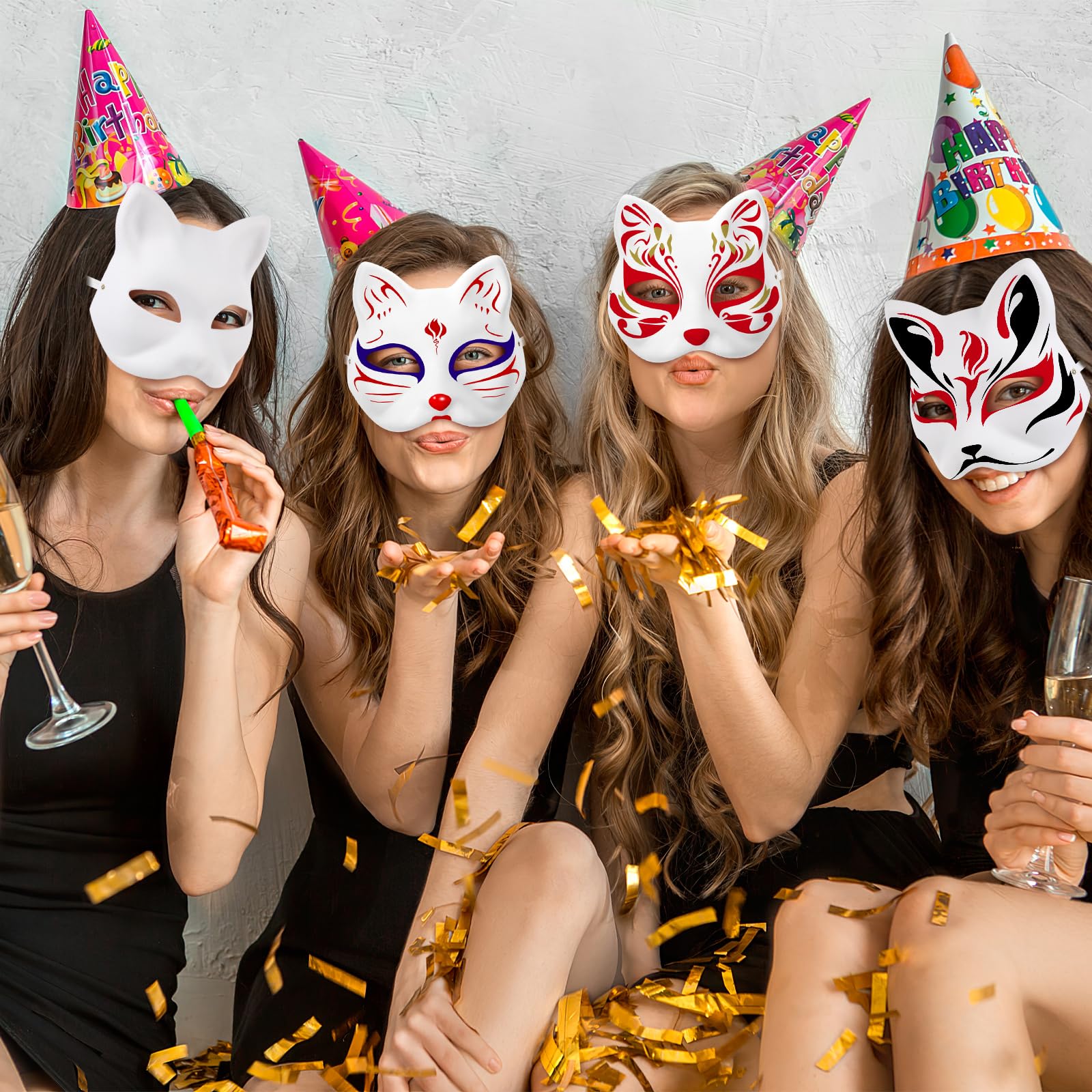 - Q: Can I paint or customize the cat masks? A: Yes, these masks are designed as blank canvases, allowing you to unleash your creativity. You can use paint, felt tips, or crayons to decorate the masks according to your imagination, making them unique for any event.