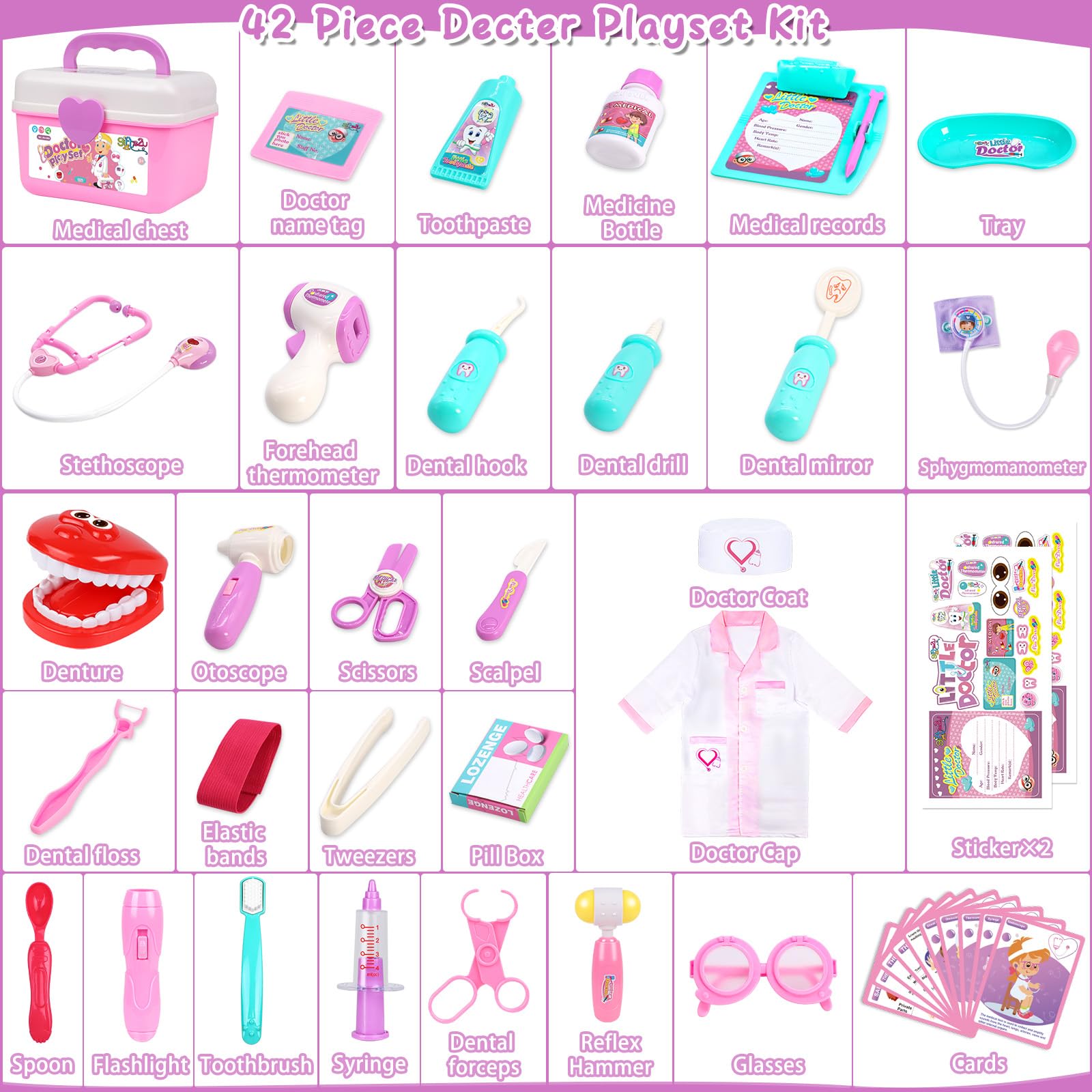 Gifts2U Doctor Kit for Toddlers 3-5, Medical Pretend Play Toys with Gift Case, 42 Piece Dentist Playset Kit for Kids,for Christm