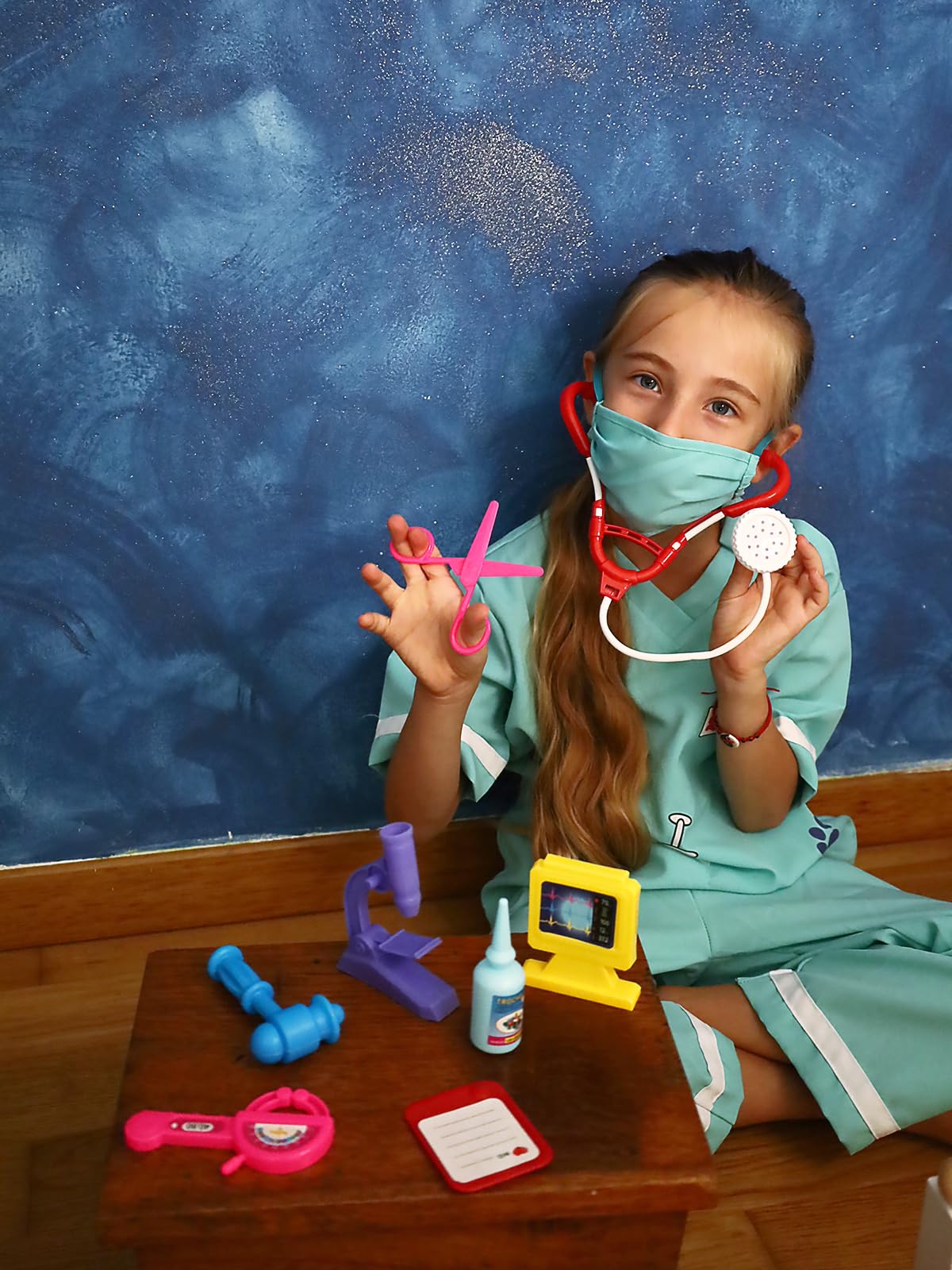Boys and girls animal doctor pretend play costume. This vet play set is a great choice for holiday and career day.