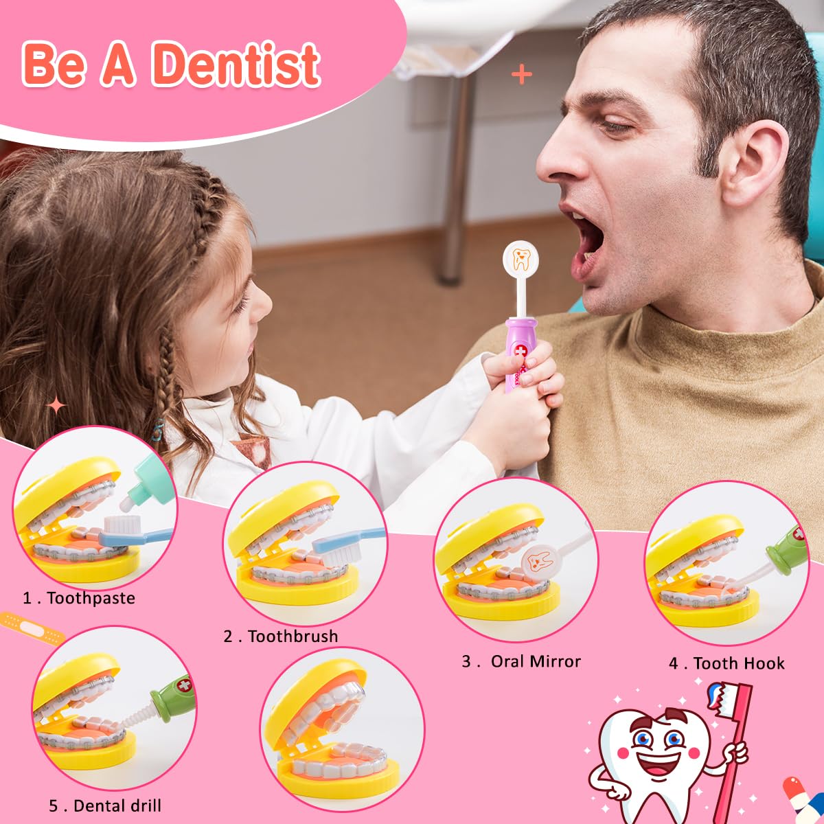 Meland Doctor Kit for Toddlers 3-5, Dentist Play Set with Teeth for Kids Pretend Play Girl Toys Birthday Gift for Toddler Girls