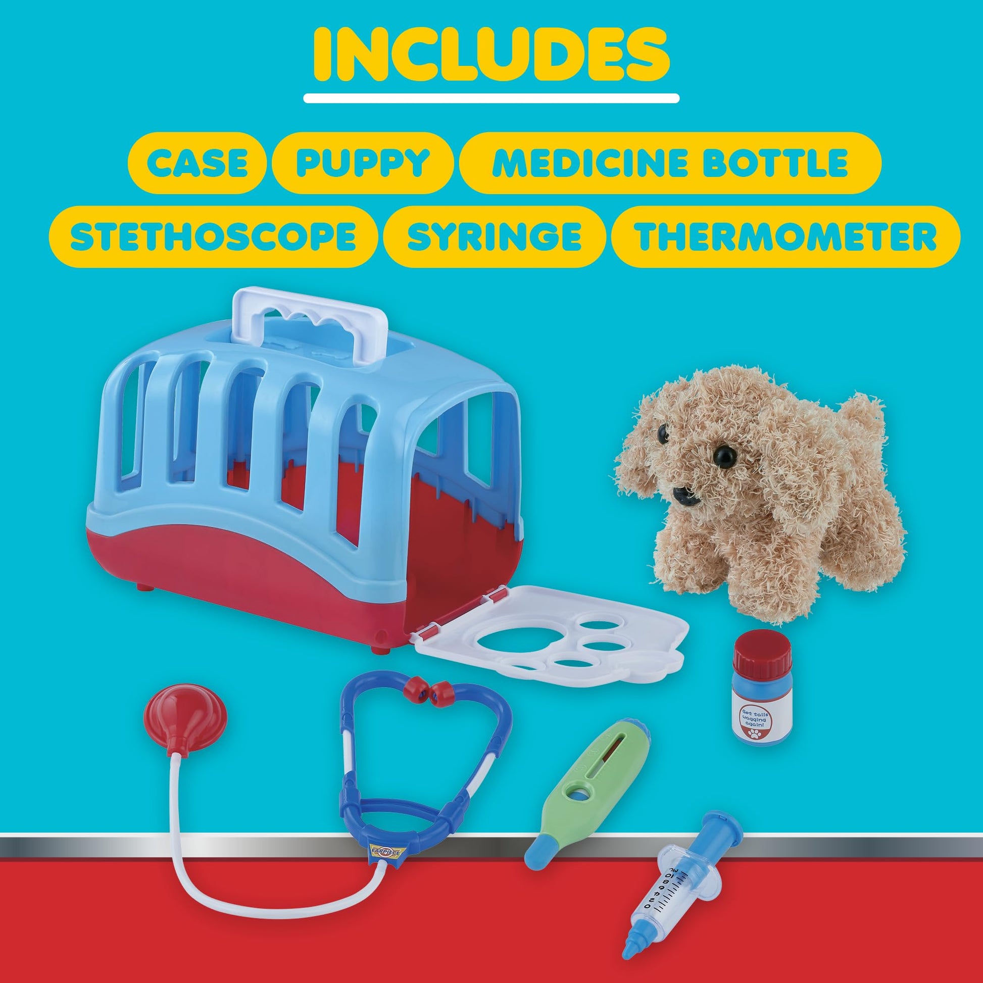 Toysmith My World My Play Vet Set - 6 Piece Puppy Playset with Doctor Tools & Crate, Multi Color, Great Gift for Ages 3+
