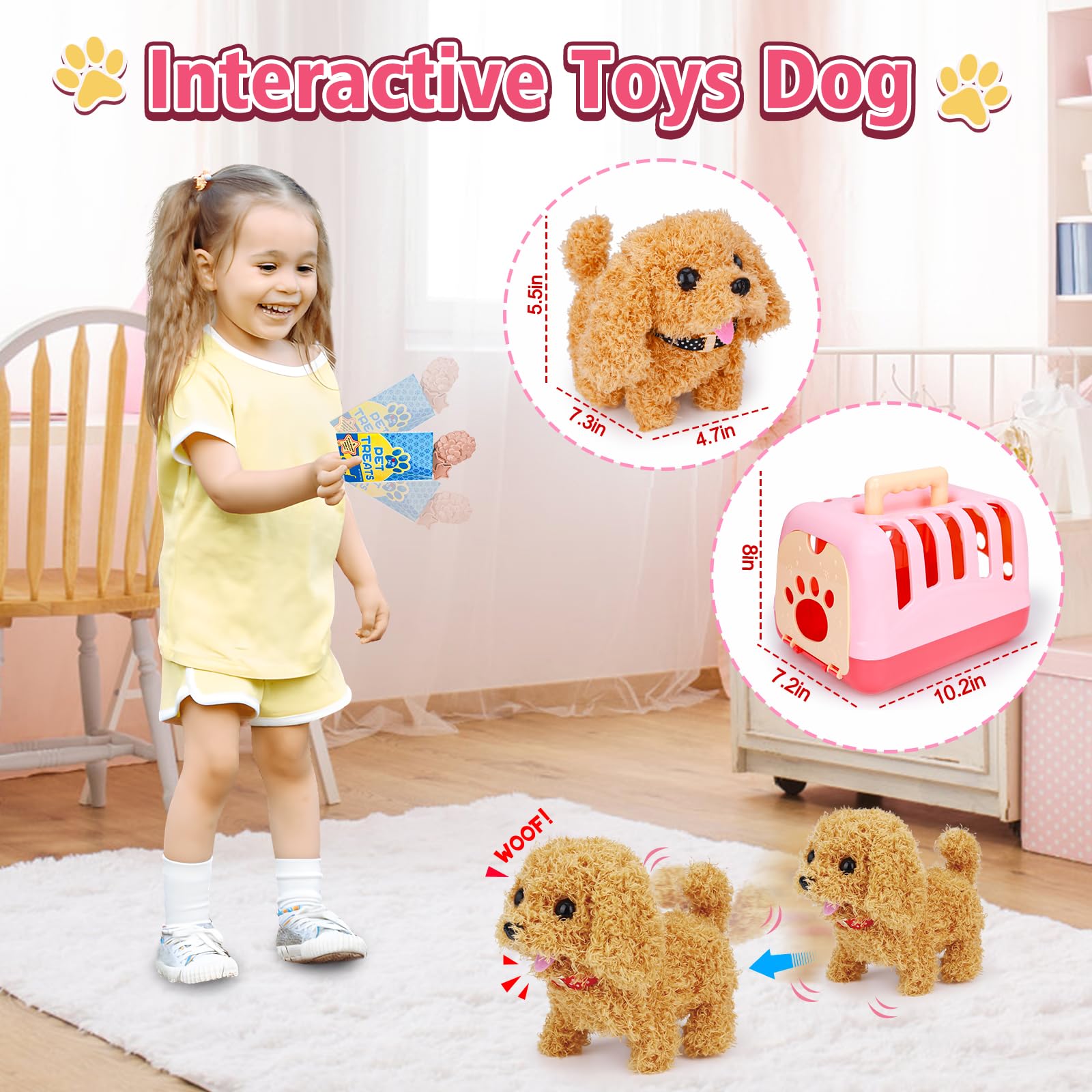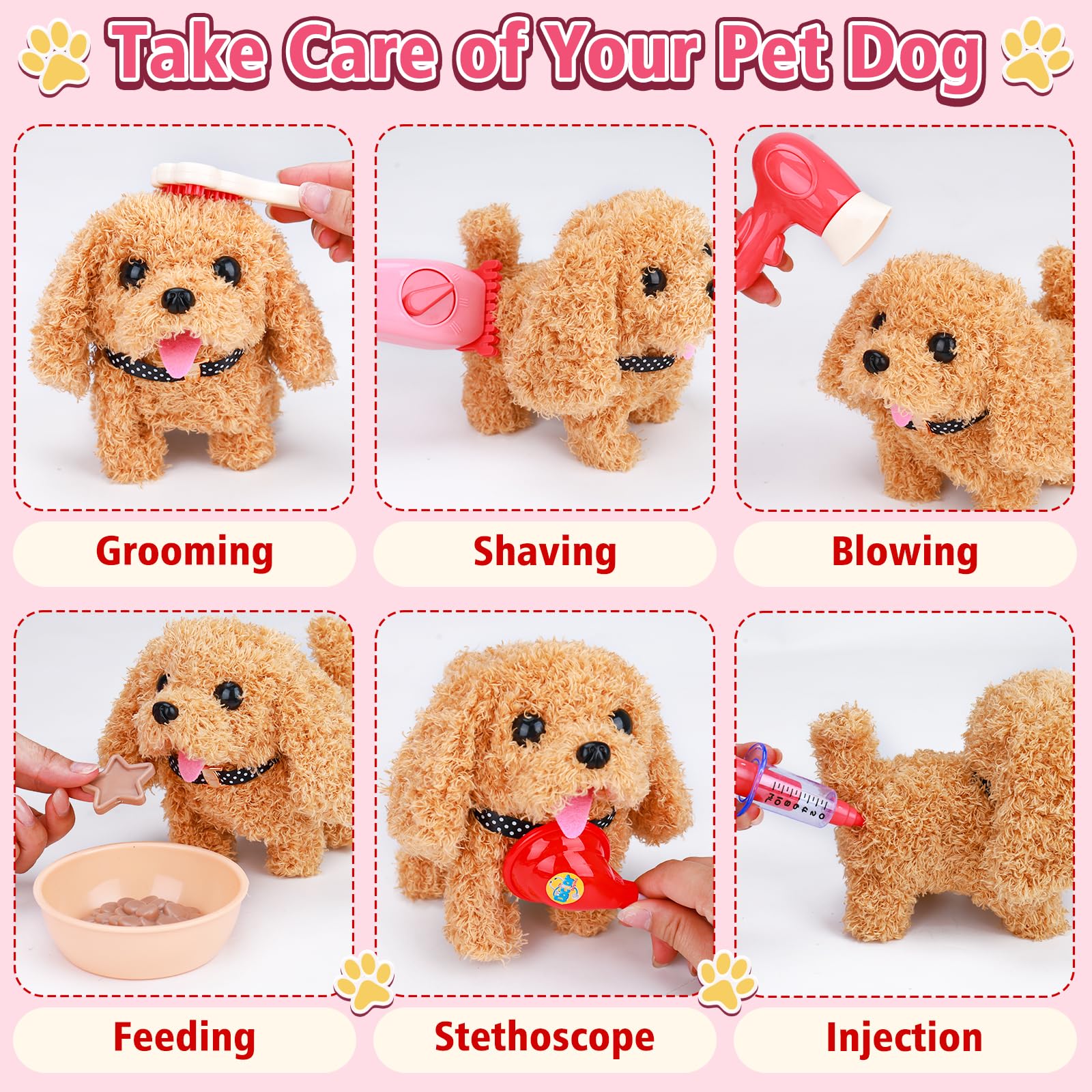 Tsomtto Interactive Dog Toy Walking Barking Veterinarian Playset for Kids Puppy Stuffed Animal with Carrier & Accessories Preten