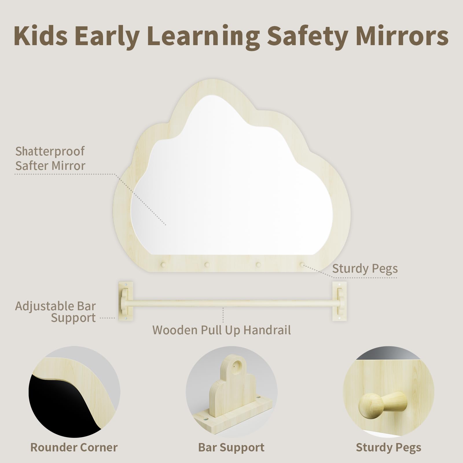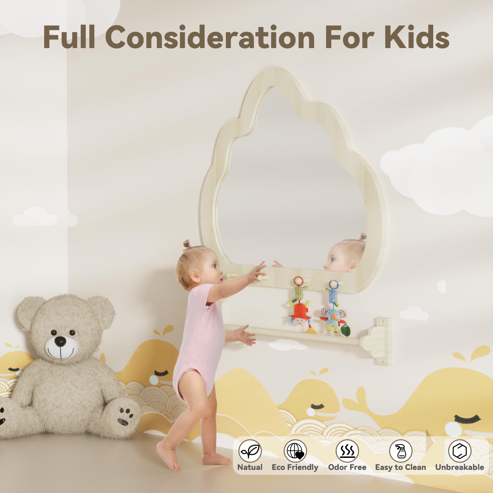 - Versatile Montessori Design: Beyond aiding in walking, this toddler mirror encourages independent exploration. Once your child masters walking, it can be converted into a bathroom mirror or towel rack, making it a lasting investment in your child's growth.