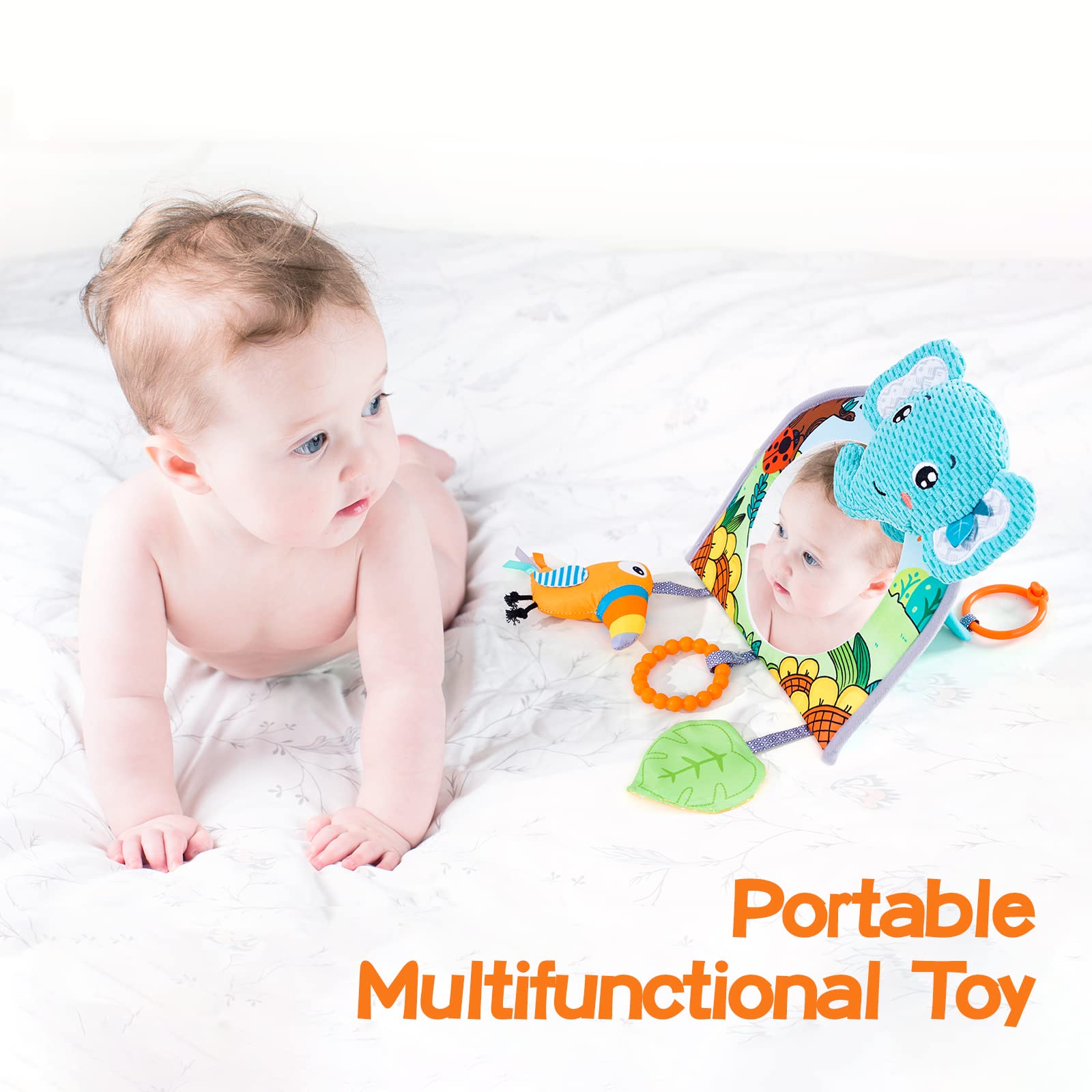 Car Seat Toys, Baby mirror Toy for car, baby car toys Rear facing, Mirror,Teether and Crinkle Paper, Fun Travel infant car seat toy for Rear face, Tummy Time Toys with Newborns, Babies carseat toy