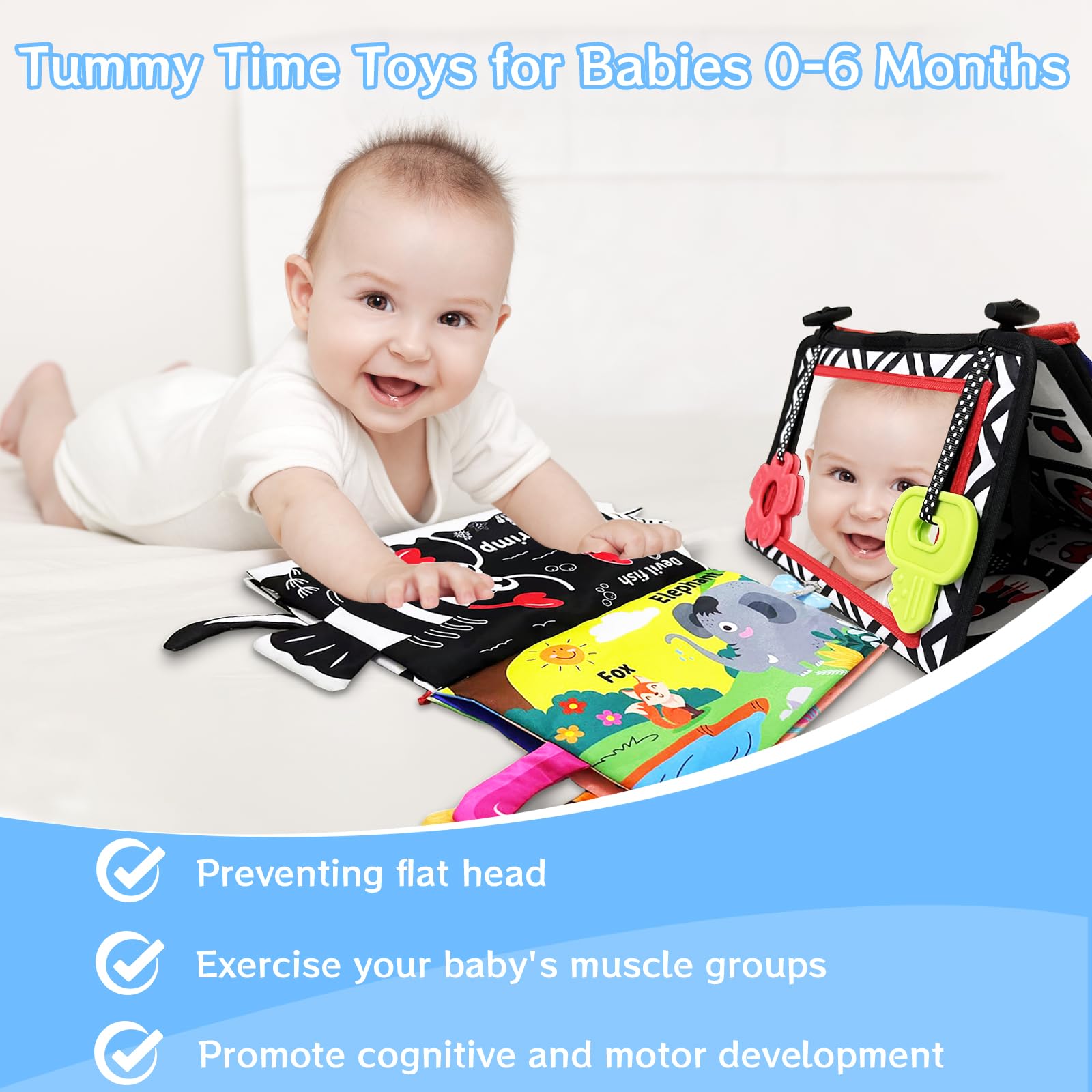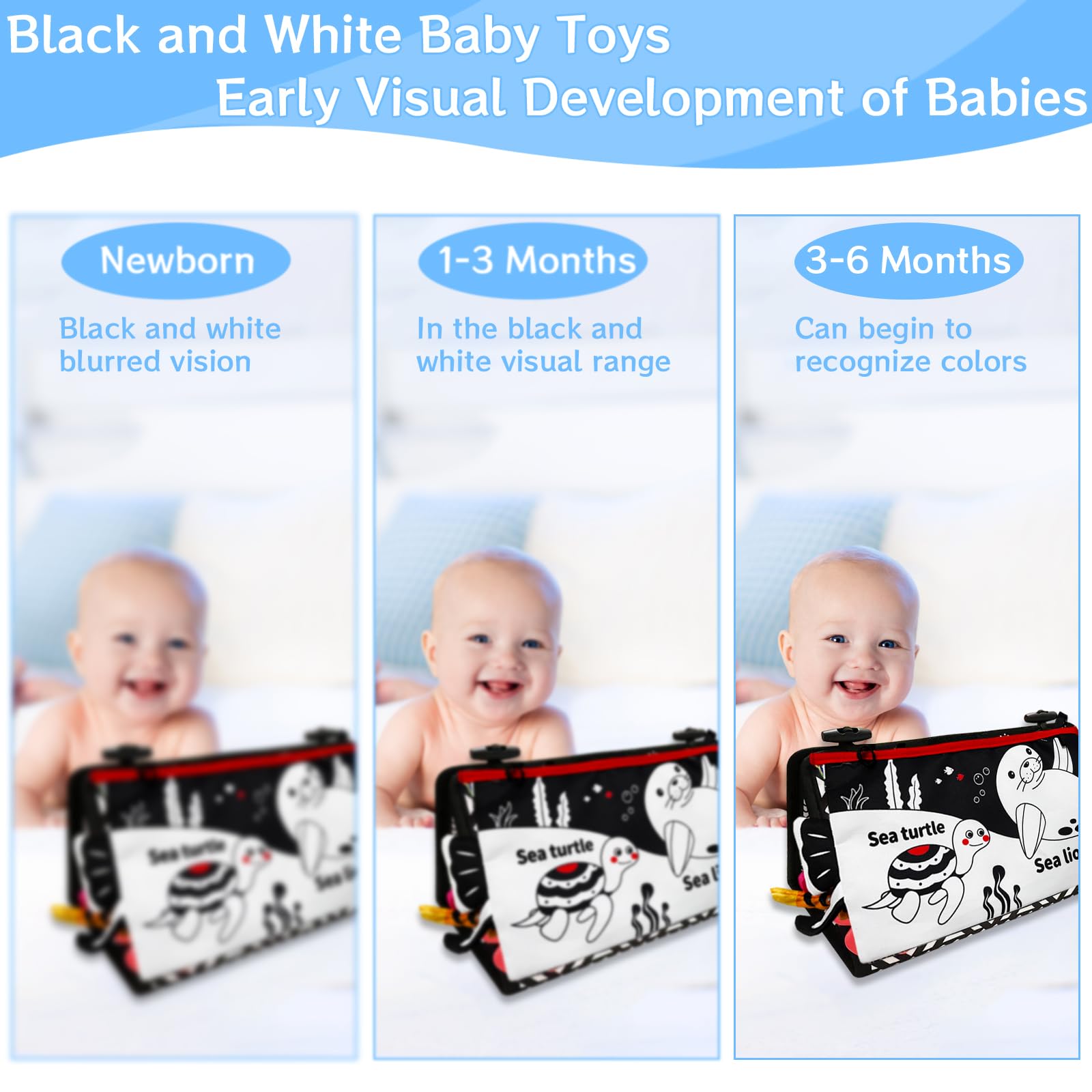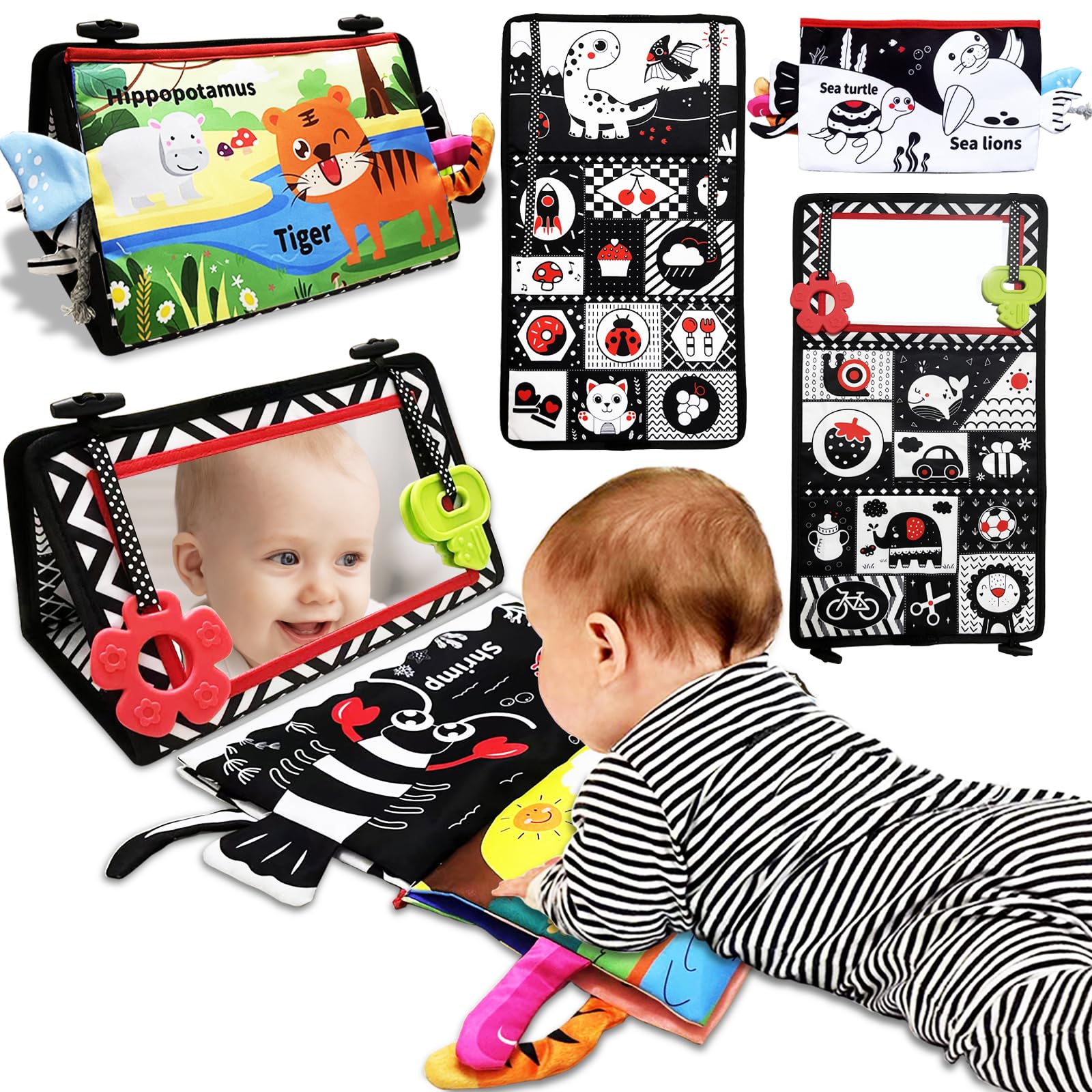 baby tummy time mirror newborn toys infant 0-6 months 0-3 3-6 6-12 month sensory black and white baby toys high contrast toy floor baby book cloth development toys for infants gifts christmas gift baby shower gifts essentials must have 1 2 3 4 5 6 7 8 9 10 11 12 month old baby toys newborns