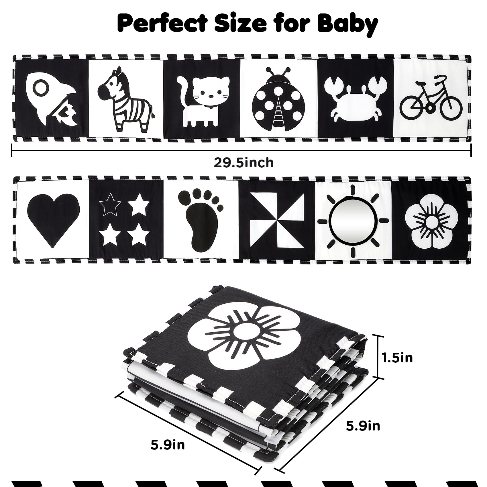 Black And White Baby Toys 0-3 Months, High Contrast Newborn Toys 0-3 Months Brain Development, Tummy Time Toys, Soft Baby Book, Infant Toys 0-6-12 Months Visual Stimulation Montessori Toy Gift