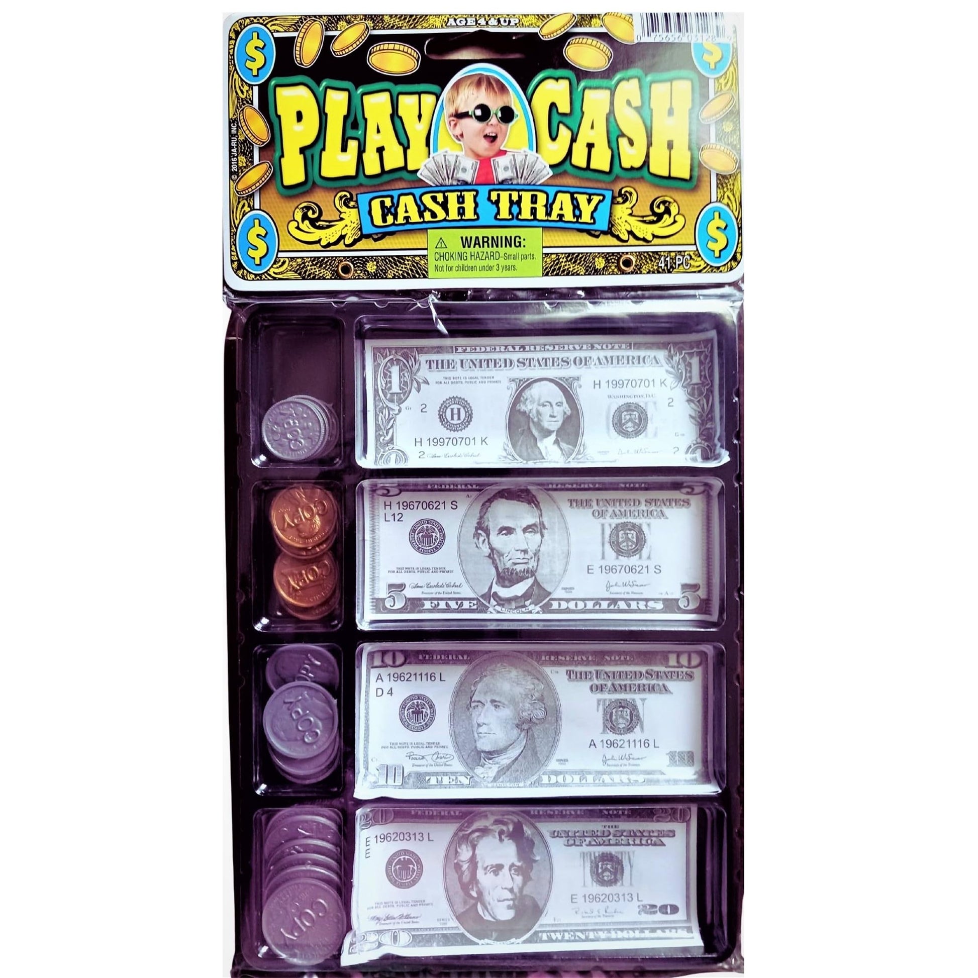 JaRu #3128 Play Money Cash Tray 20 Coins and 20 Bills Kids Pretend Toy