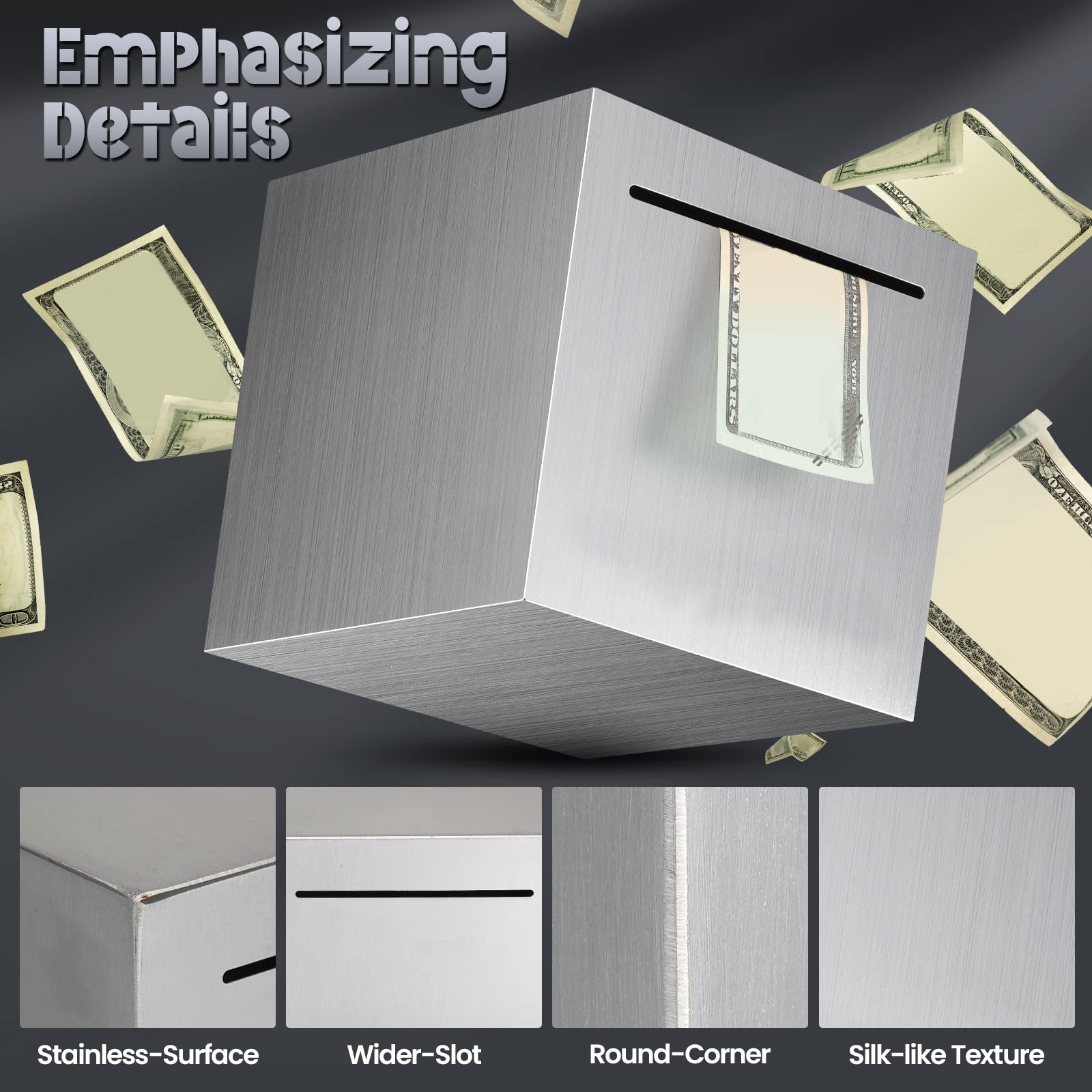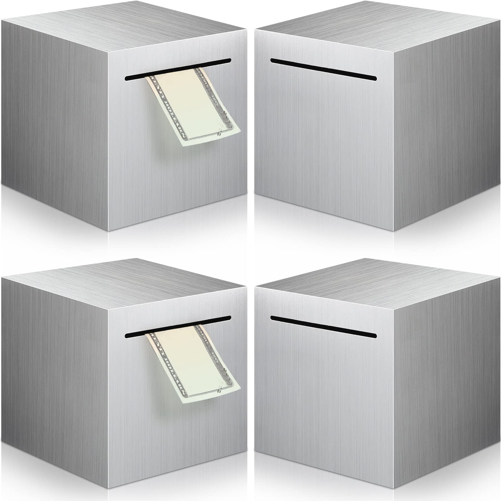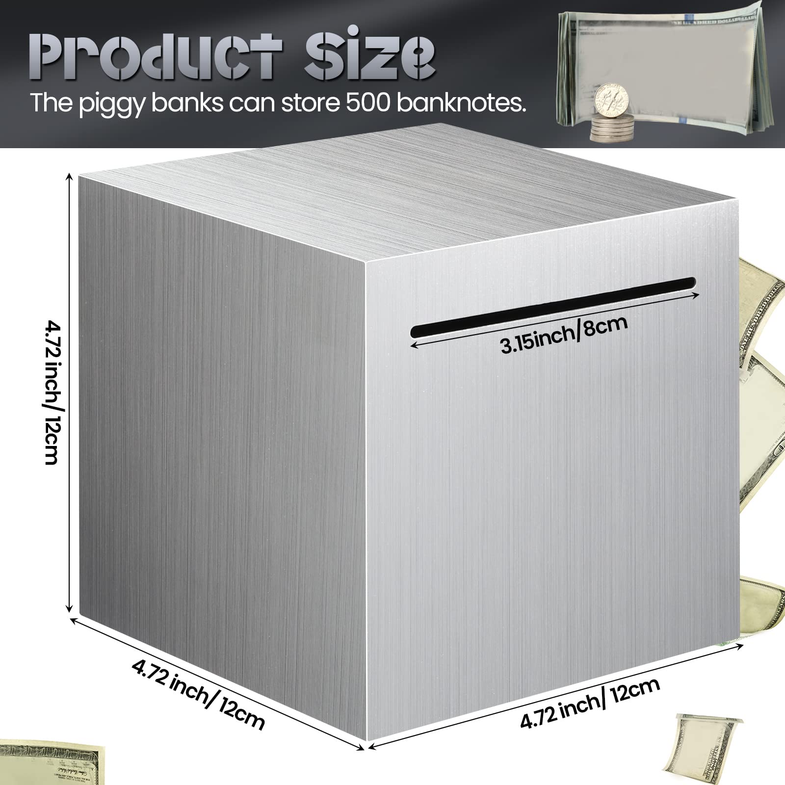 Features: Detailed Craftsmanship: The Money Banks For Adults Are Well Crafted With Good Polishing, Casting, Cutting And Welding Processes, Can Stay Well In Their Original States As Time Goes By, And Won'T Lose Luster In A Short Time. Utility Gift Ideas: These Money Saver Boxes Are Feasible To Be Sent As Practical Gifts To Your Friends, Colleagues, Classmates, Children, Parents, Relatives And Someone Else, Making Them Feel Your Sincere Care, Love And Considerate Thoughts. Specifications: Material: Stainless Steel Color: Silver Size: Approx. 4.72 X 4.72 X 4.72 Inch Package Includes: 4 X Adults Piggy Banks Warm Notes: The Items Are Suitable For Children Above 3 Years Old. Manual Measurement, Please Allow Slight Errors On Size. The Color May Exist A Slight Difference Due To Different Screen Displays.