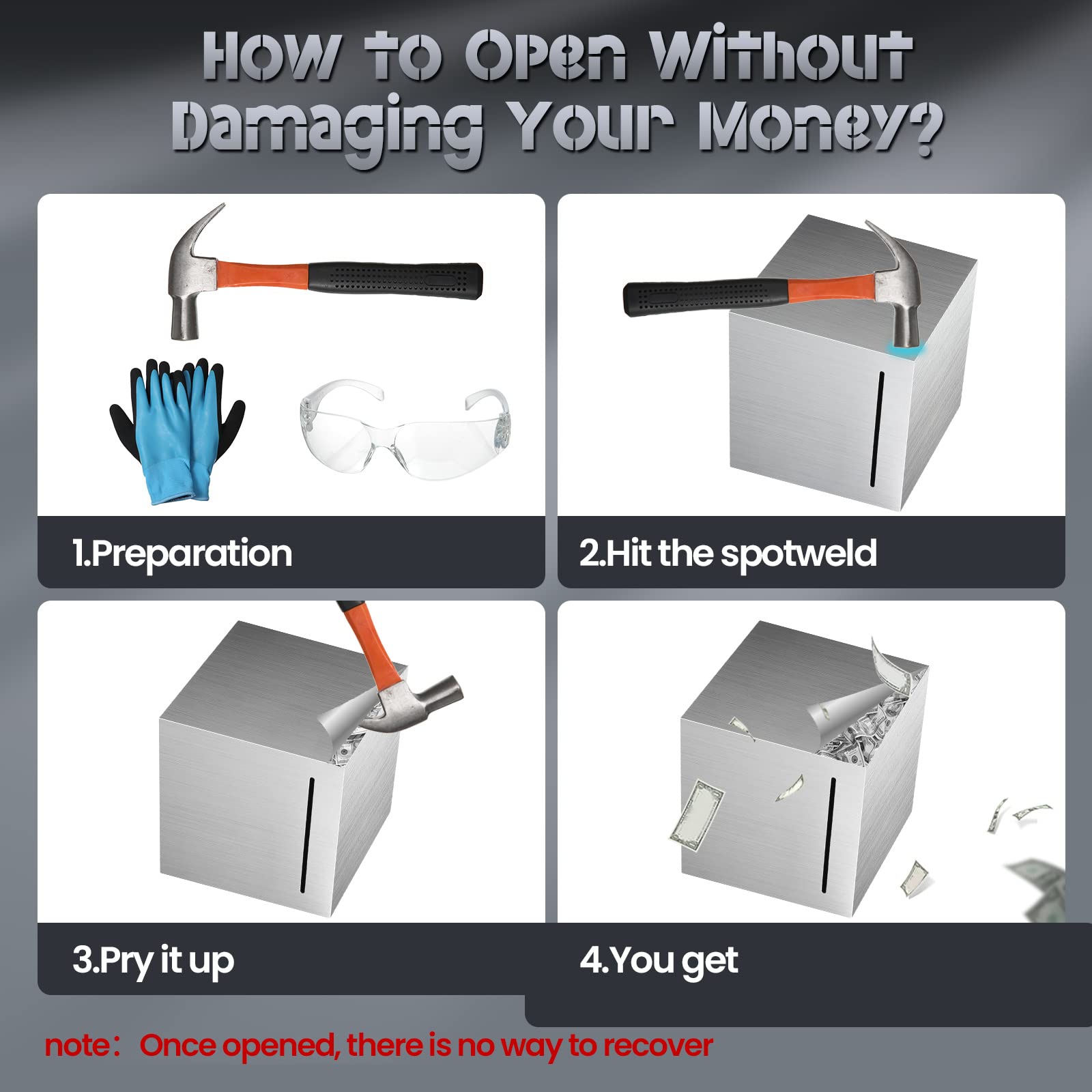4 Pcs Piggy Bank For Adults Stainless Steel Adults Savings Bank Must Break To Open Metal Money Bank Money Saving Box, 4.72 Inch