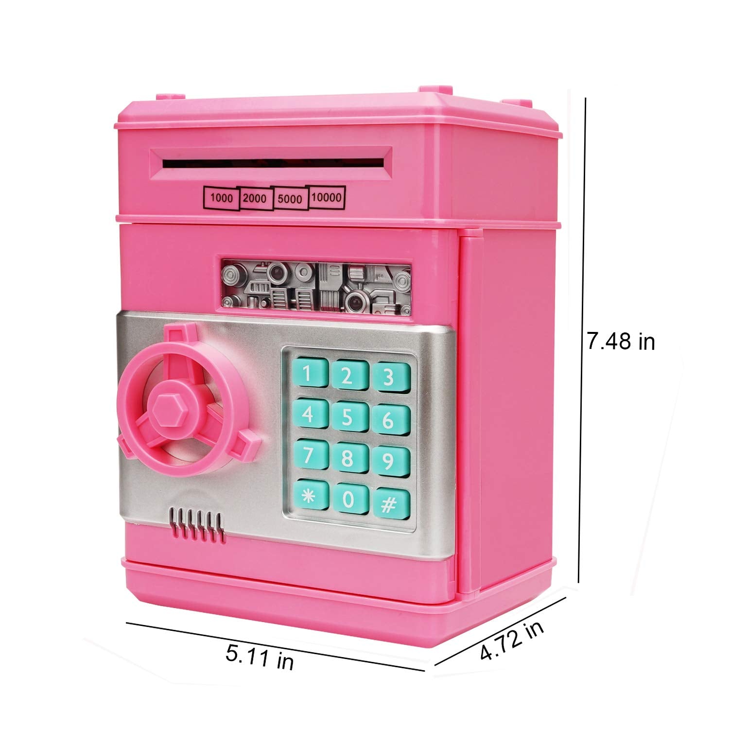 Adevena Electronic Piggy Bank, Mini Atm Password Money Bank Cash Coins Saving Box For Kids, Cartoon Safe Bank Box Perfect Toy Gifts For Boys Girls (Pink)