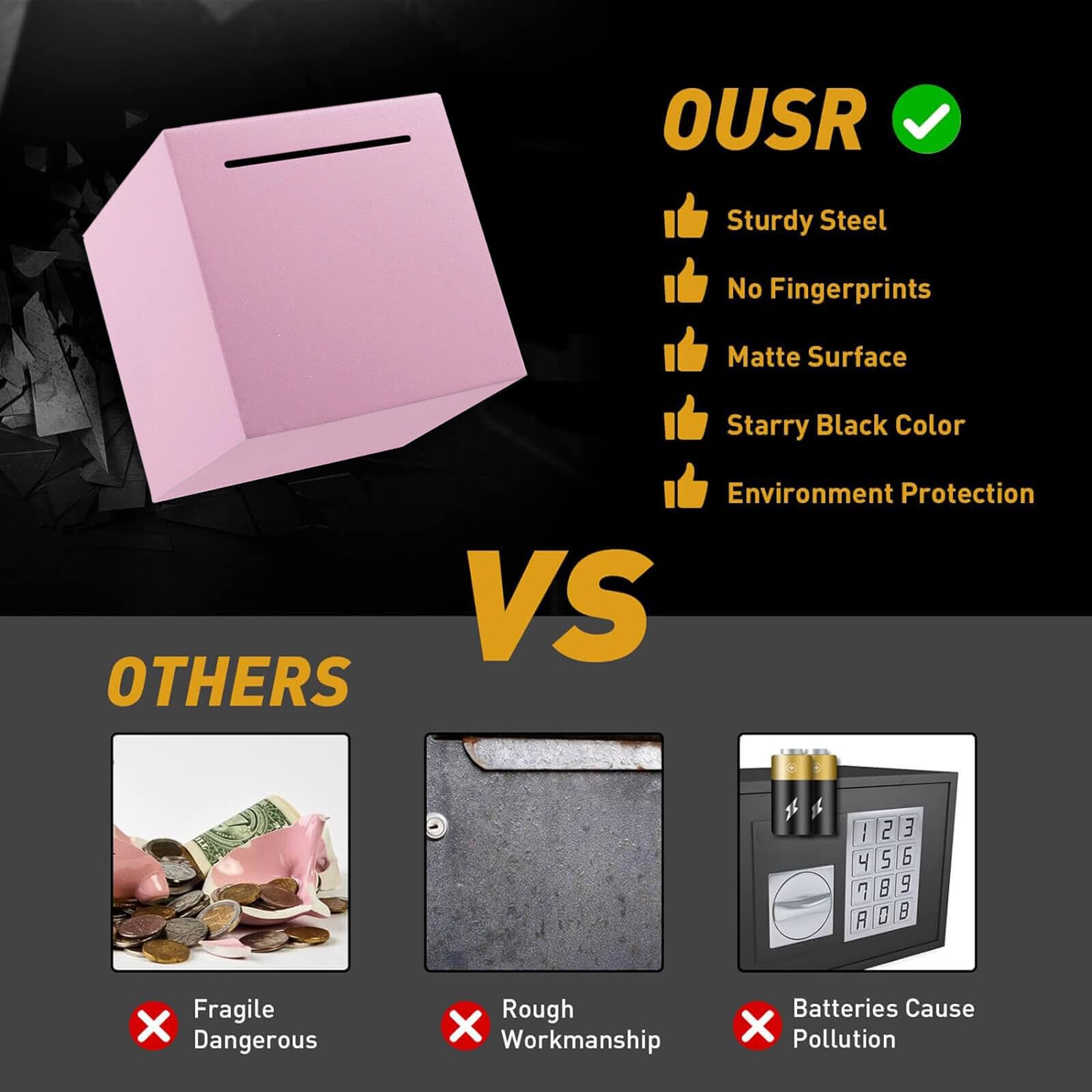 HuaArt Piggy Bank for Adults,Safe Piggy Bank Made of Stainless Steel,Can Only Save The Piggy Bank That Cannot be Taken Out
