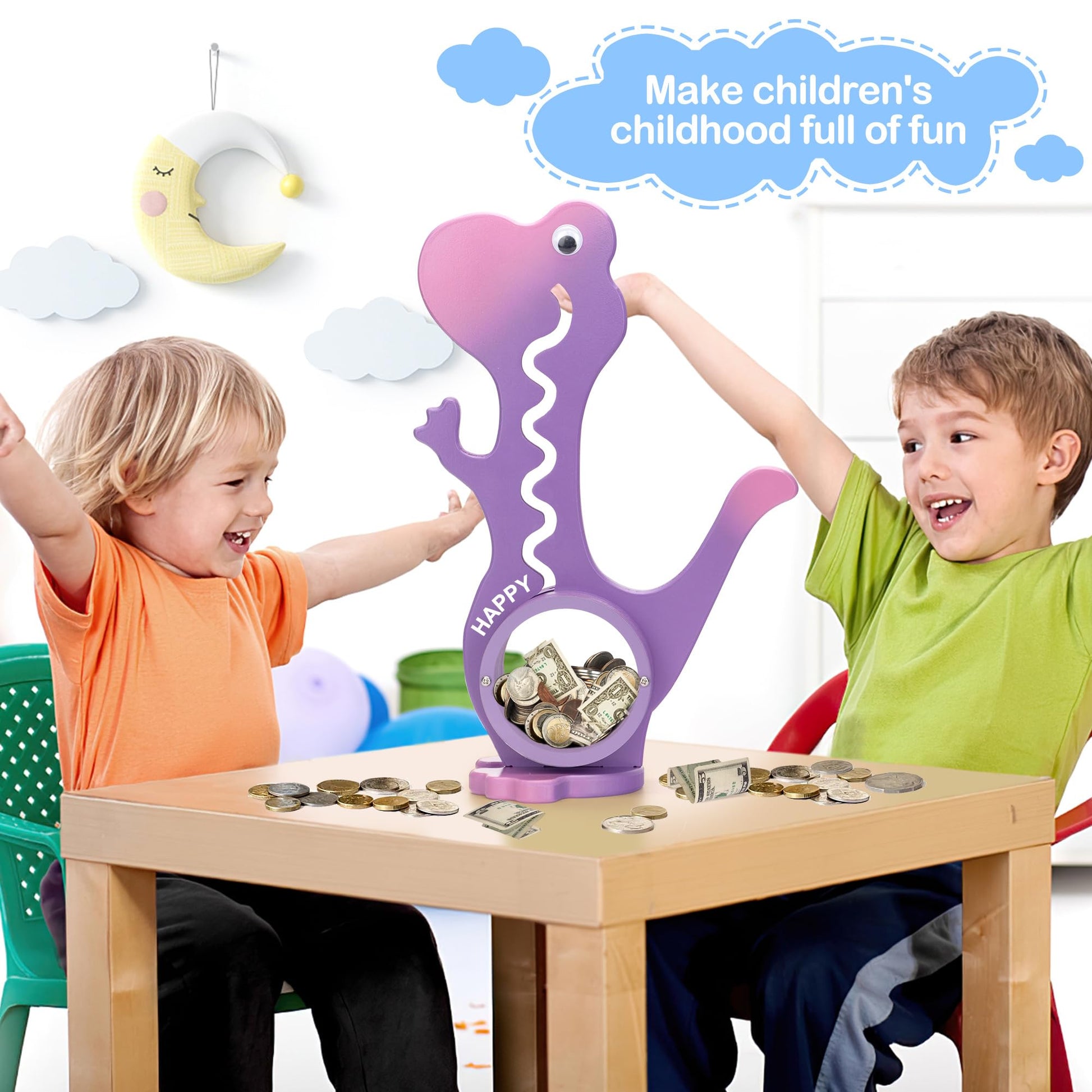 AORCMITN Wooden Dinosaur Piggy Bank Boalord for Boys Kids Girls Clear Big Belly Animal Coin Bank for Toddler Real Money Toy(Dino