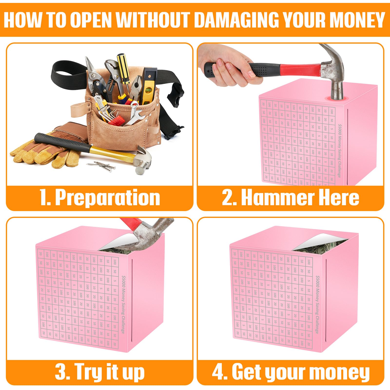 View compareCroBlissful Money Saving Box 4.72 Inches Unbreakable Piggy Bank for Adults with 2 Dry-Erase Pens Cash Savings Challenge Box Two-