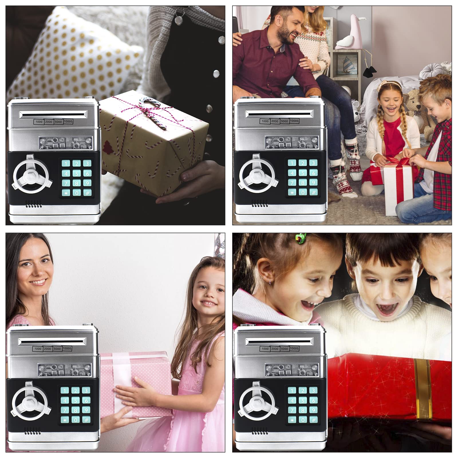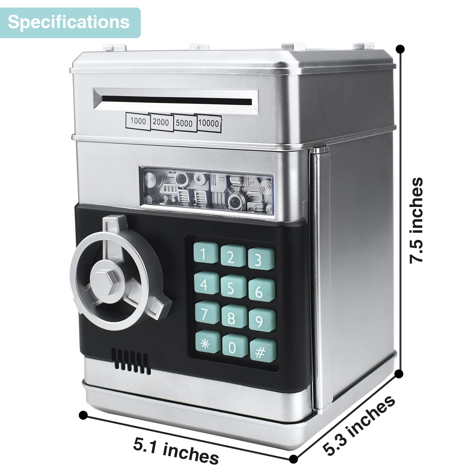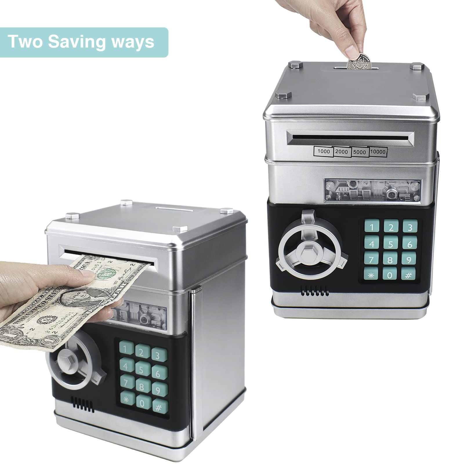 Elemusi Piggy Bank For Kids, Atm Electronic Password Cash Coin Bank, Money Saving Box For Kids, Boys Girls Birthday Gift (Silver)