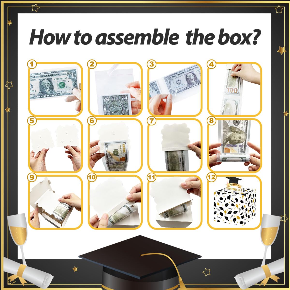 - Q: How do I assemble the cash surprise gift box? A: Assembling the cash surprise gift box is easy! Simply place the bills in the included plastic bag, seal it tightly, roll it into the box, and secure it with the birthday cards provided.