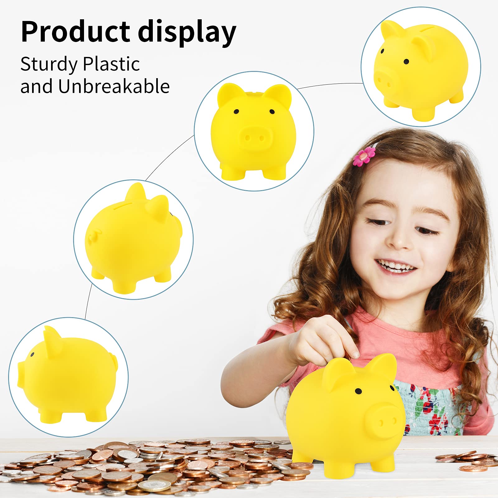 GADIEDIE Large Piggy Bank Unbreakable Plastic Money Bank Coin Bank for Girls and Boys Cute Pig Coin Bank Practical Gifts for Birthday Festival Baby Shower (Yellow)