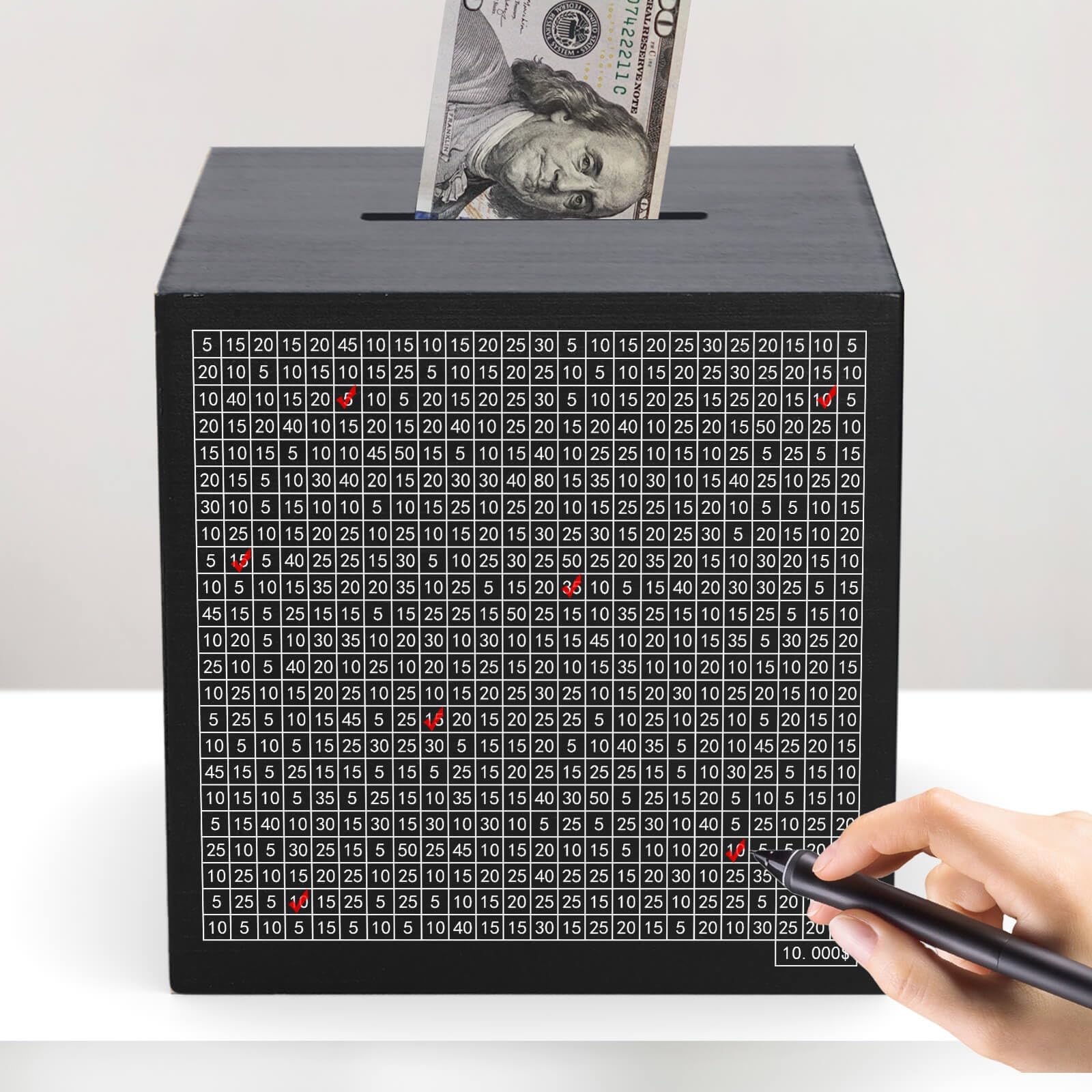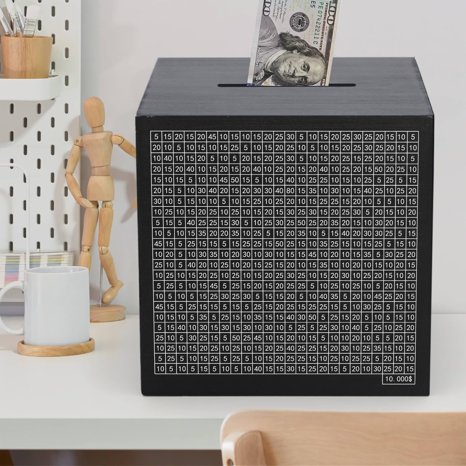 View compareHchangen Wooden Savings Challenge Box For Adults Kids, Wood Coin Piggy Bnak, Must Break To Open Money Box With Counter (Black, 7
