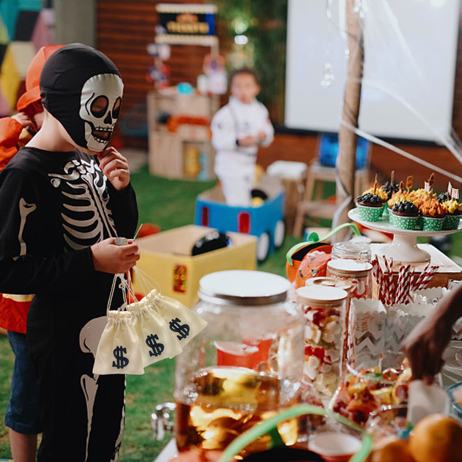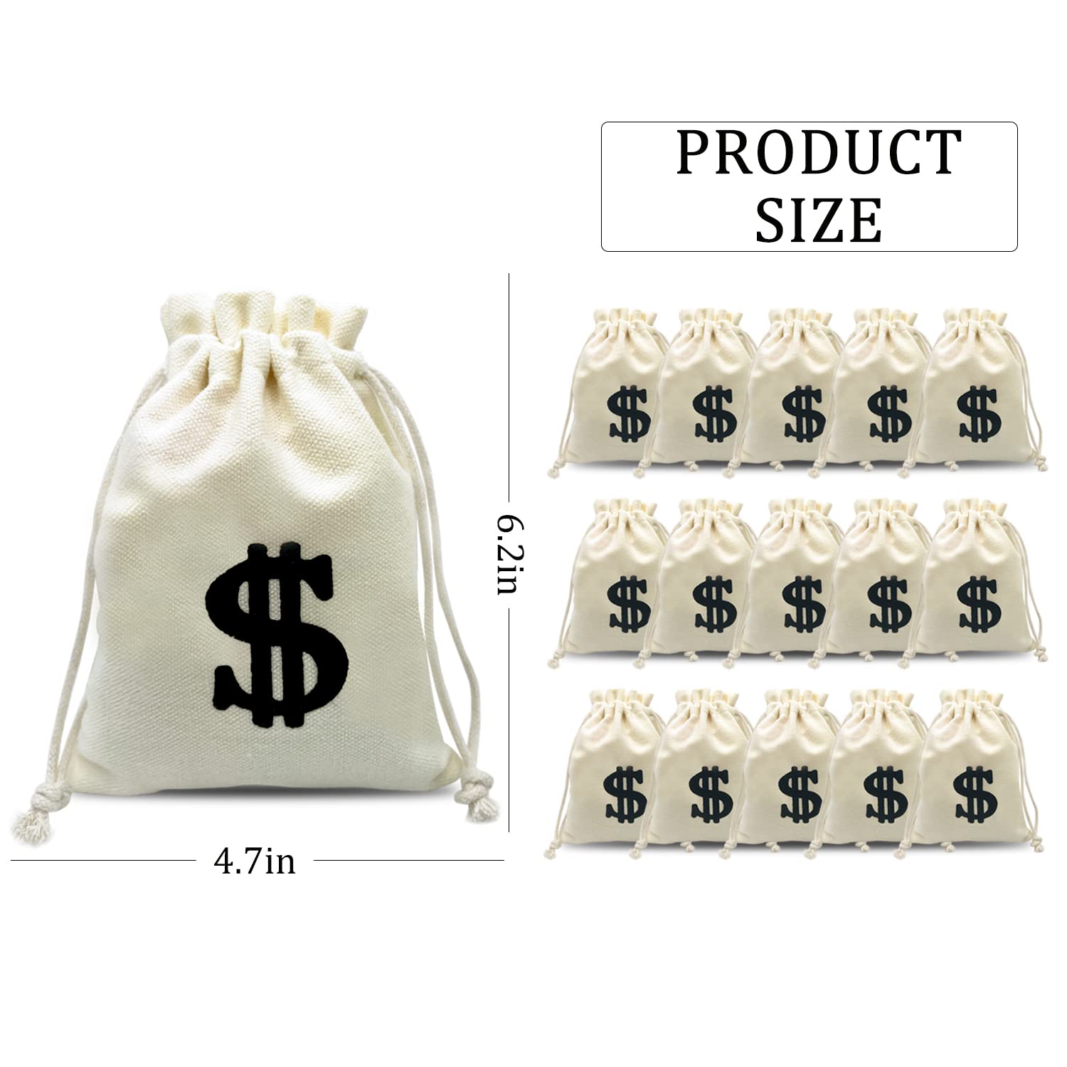 Hfyzz 15Pack 4.7 X 6.2 Inches Canvas Money Sack Bag With Dollar Sign Money Bags Decor With Drawstring For Bank Robber Pirate Cow