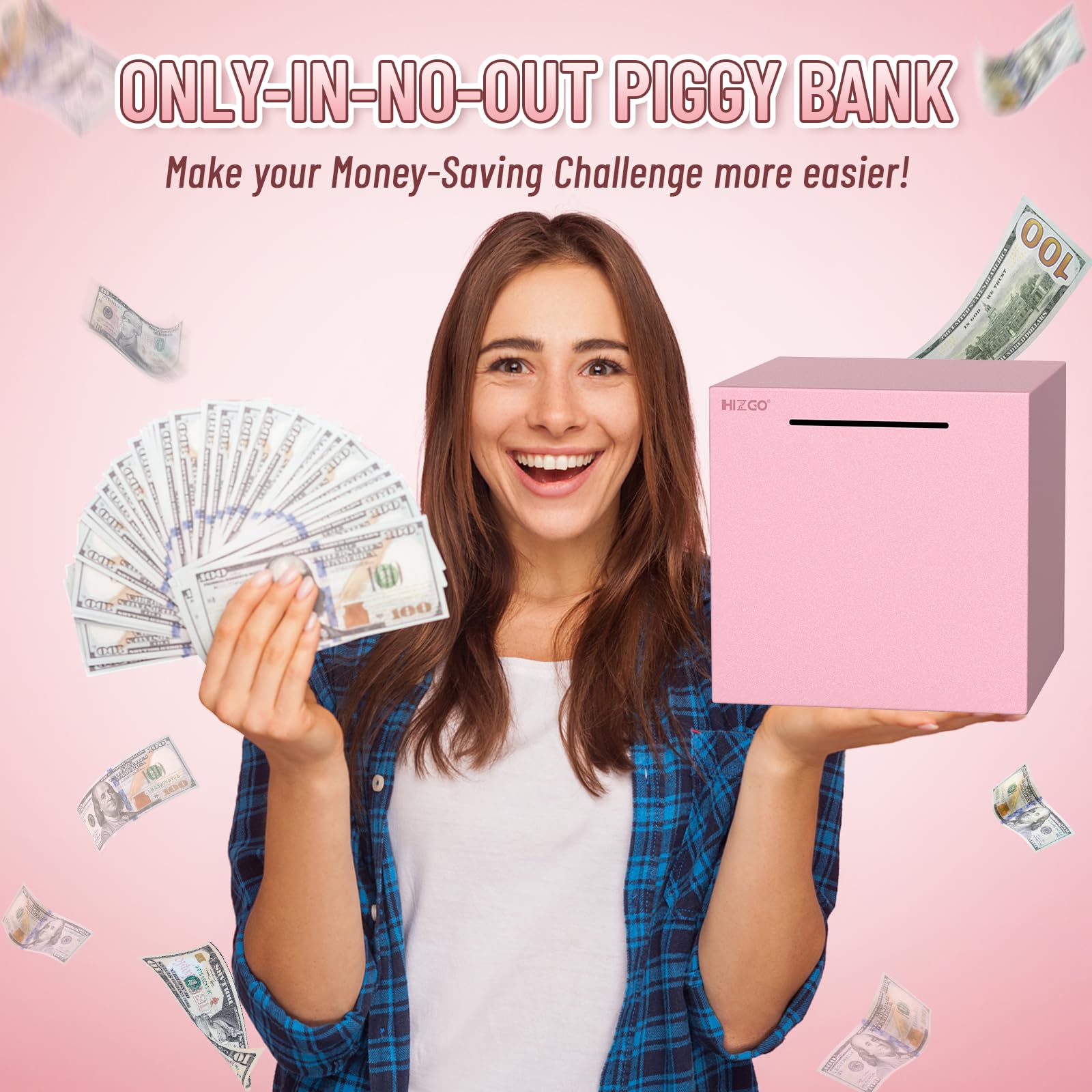 View compareHizgo Adults Pink Piggy Bank, Stainless Steel Piggy Bank For Adults/Kids Must Break To Open, Unopenable Money Saving Box(7.9-Inch, Pink)