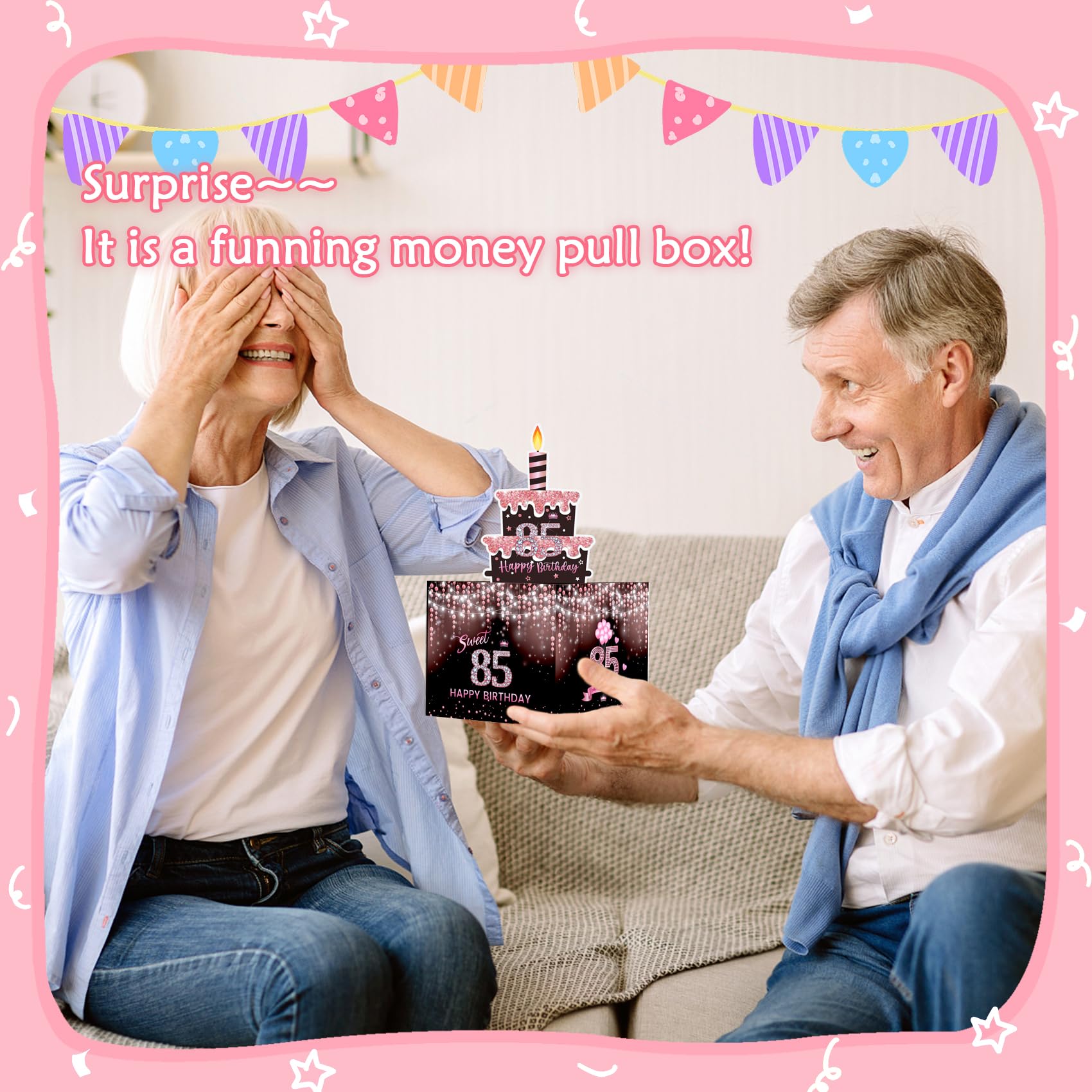 Meiidoshine Sweet 85Th Birthday Money Box For Cash Gift, Surprise Pull Out Money Gift Box With 100Pcs Transparent Bags - Fun Way