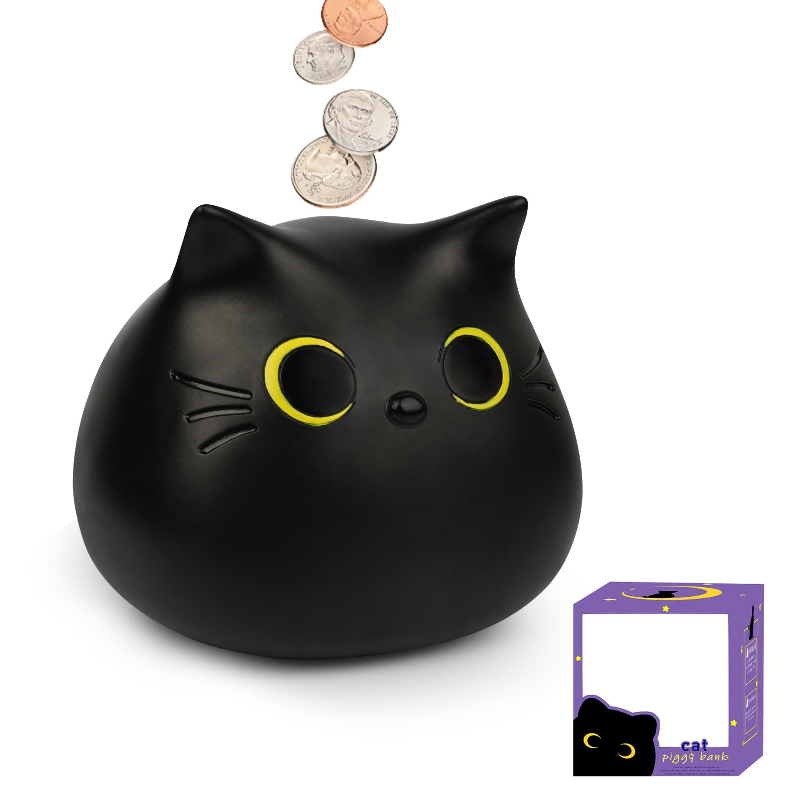 Nigoways Cat Piggy Bank - Piggy Bank For Kids And Adults,Unbreakable Money Bank,Cat Bank,Practical Gifts For Birthday(Black Cat)