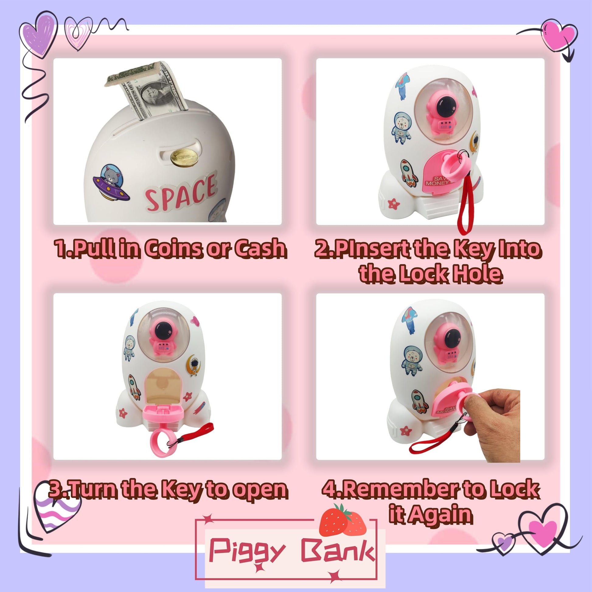 Rocket Ship Piggy Bank For Girls Money Safe Astronaut Piggy Banks For Kids Cash Coin Can Atm Bank For Boys With Key Astronaut St