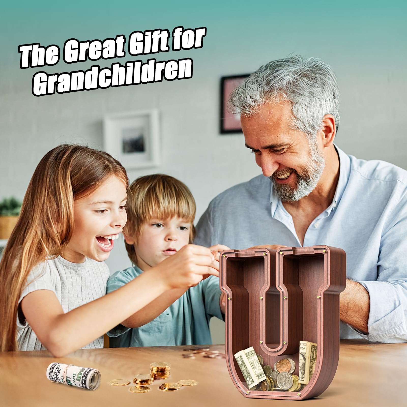 Summidate Wooden Letter Piggy Bank Extra Thick Large Capacity Piggy Bank for Kids Boys Girls Toddler Alphabet U Money Bank| Coin Box Birthday Christmas Festival