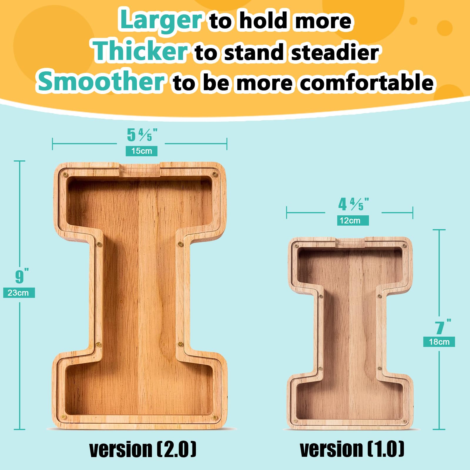View compareSummiDate Wooden Letter Piggy Bank| Piggy Bank for Boys Girls Toddler| Alphabet I Money Bank| Coin Bank Birthday Gift for Kids|Birthday Gift for Kids (I)