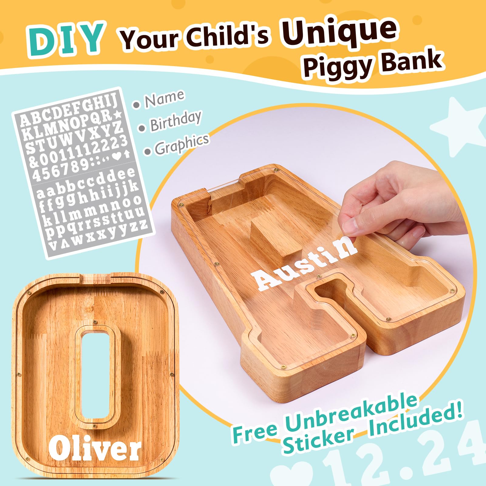 View compareSummiDate Wooden Letter Piggy Bank| Piggy Bank for Boys Girls Toddler| Alphabet O Money Bank| Coin Bank Birthday Gift for Kids|Birthday Gift for Kids (O)