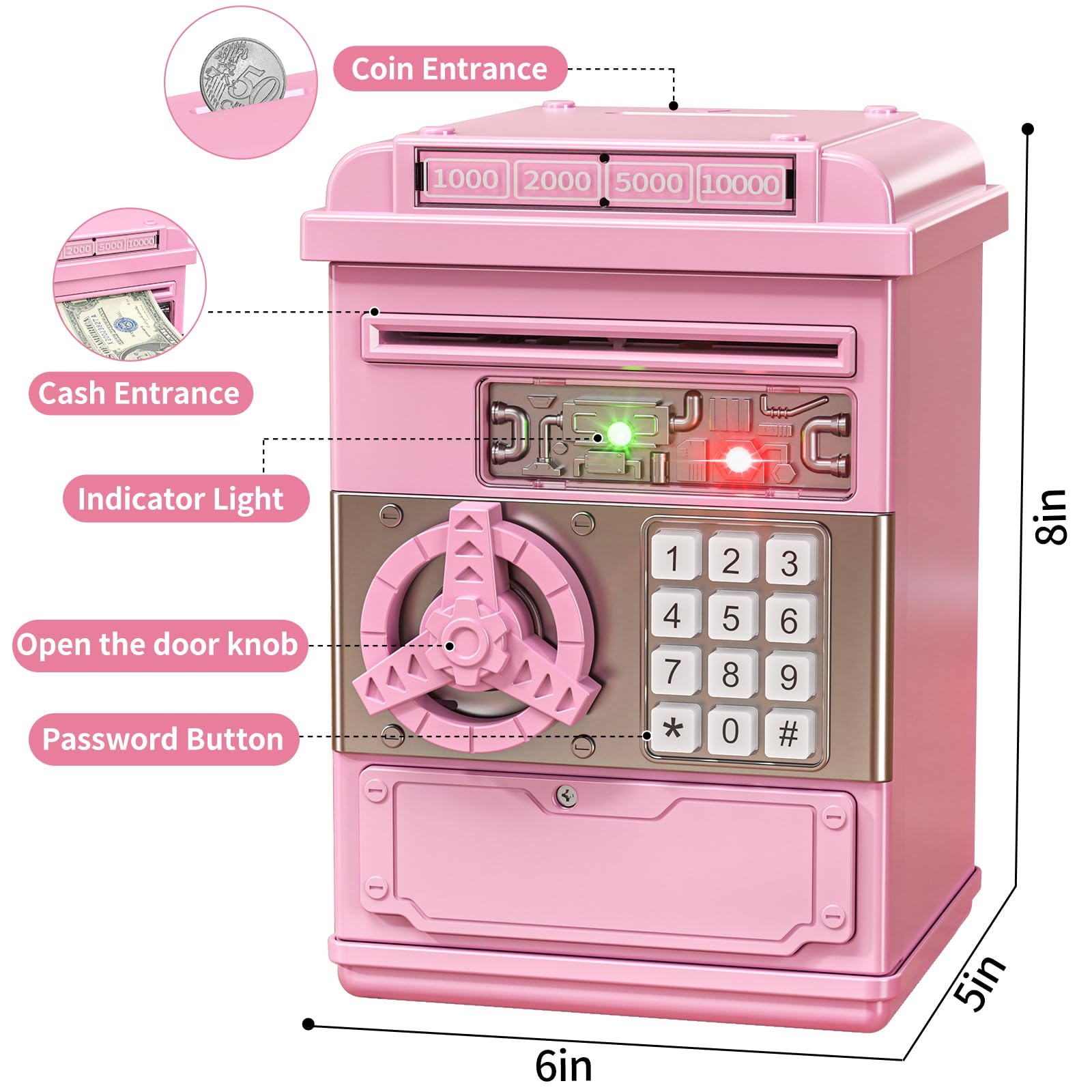 View compareTemi Piggy Bank For Kids, Electronic Coin Money Bank For 3 4 5 6 7 8 9 10 Year Old Girls Gifts, Cash Coin Can Atm Bank For Kids 5-7, Christmas Birthday Gifts (Pink)