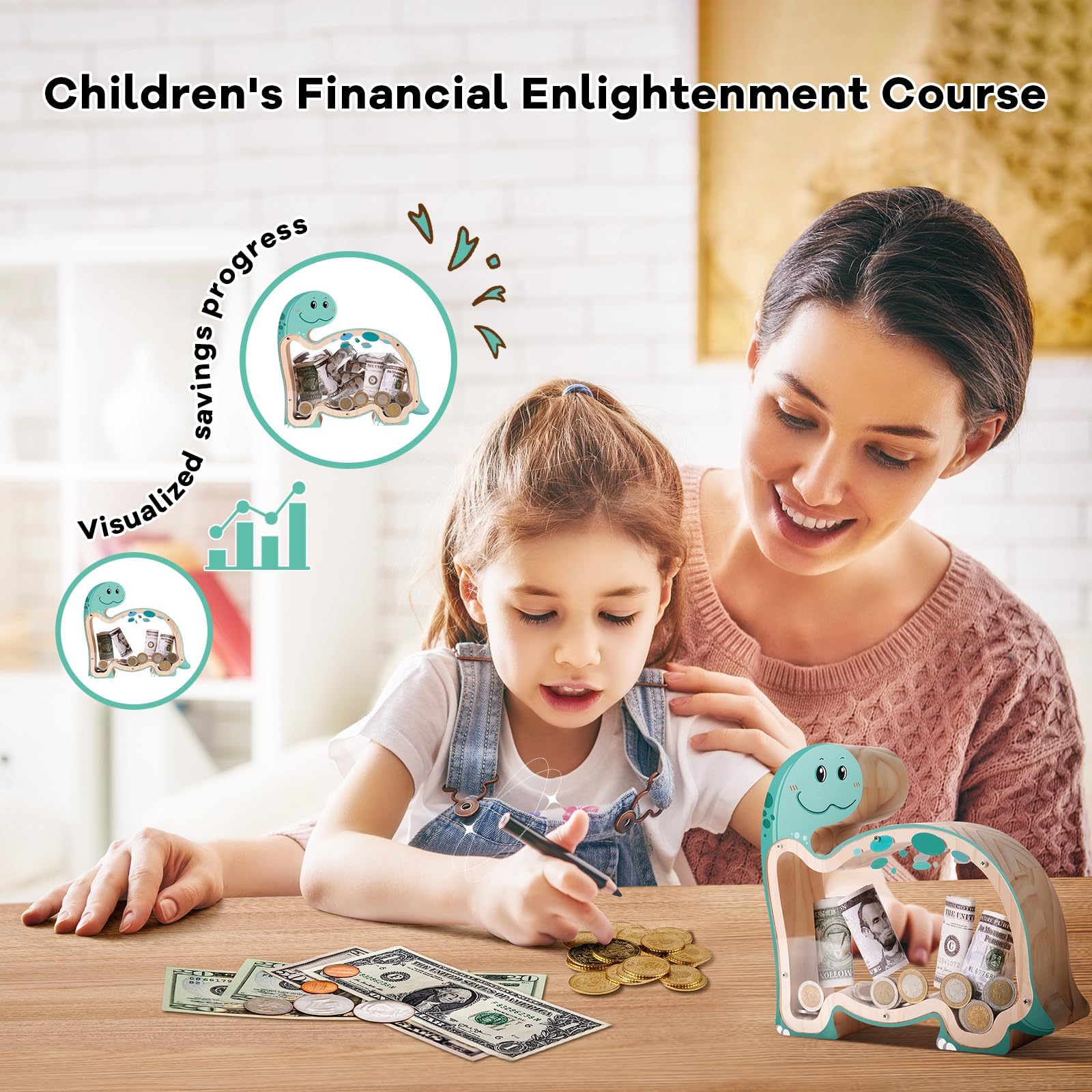 Natural Piggy Bank for Kids - The piggy bank features a cute piggy image, made of natural wood, with oversized capacity. The overall shape of the piggy bank toy is naive, which makes kids fall in love with it at a glance. The color scheme is warm and childlike. You can view the storage through the transparent acrylic window to help your child develop the habit of saving money and explore the fun of saving money. The large piggy bank is the perfect gift for children.