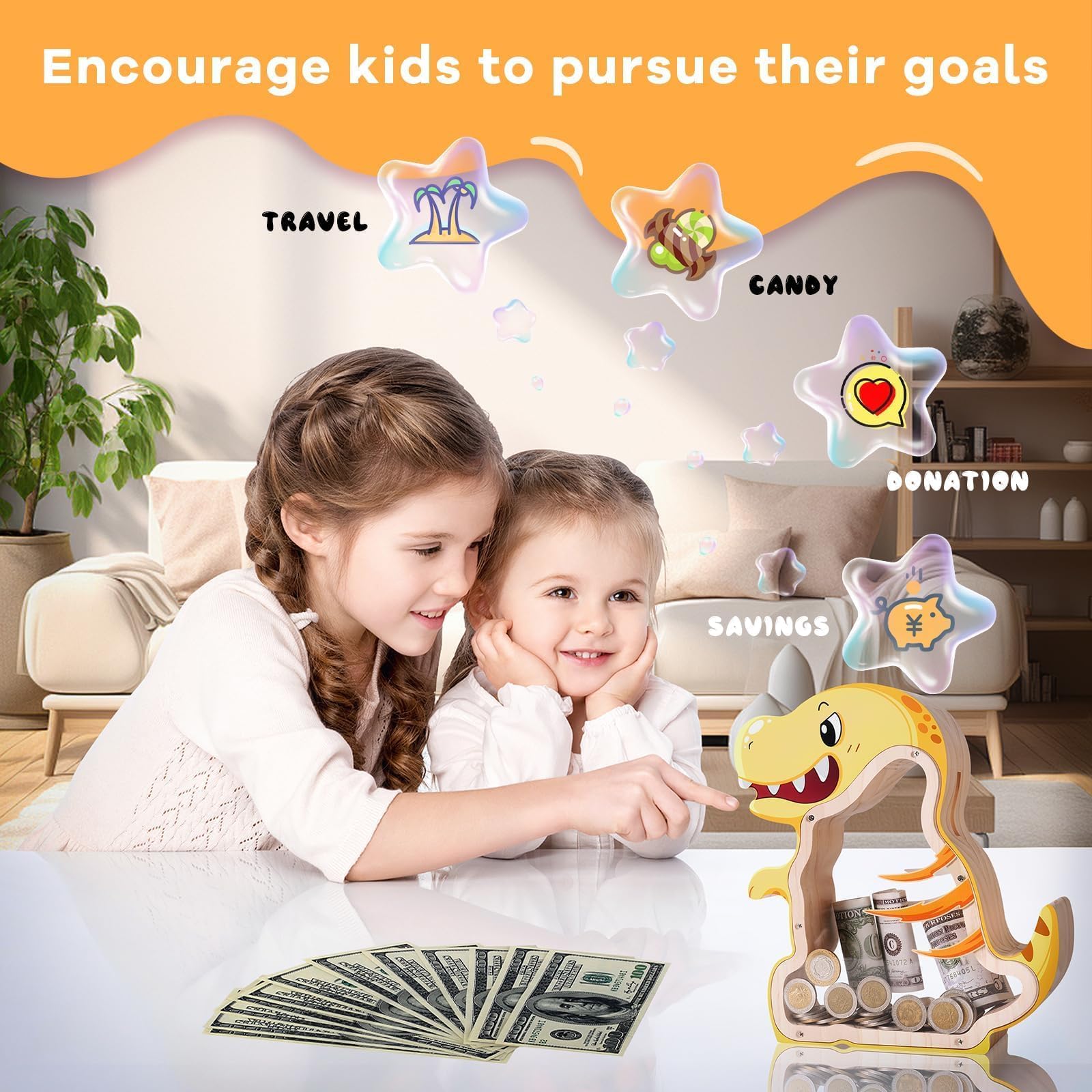 View compareWooden Dinosaur Piggy Banks For Kids Money Coin Bank, T-Rex Unbreakable Piggy Bank Diy Personalized Kids Safe Money Box With Sti