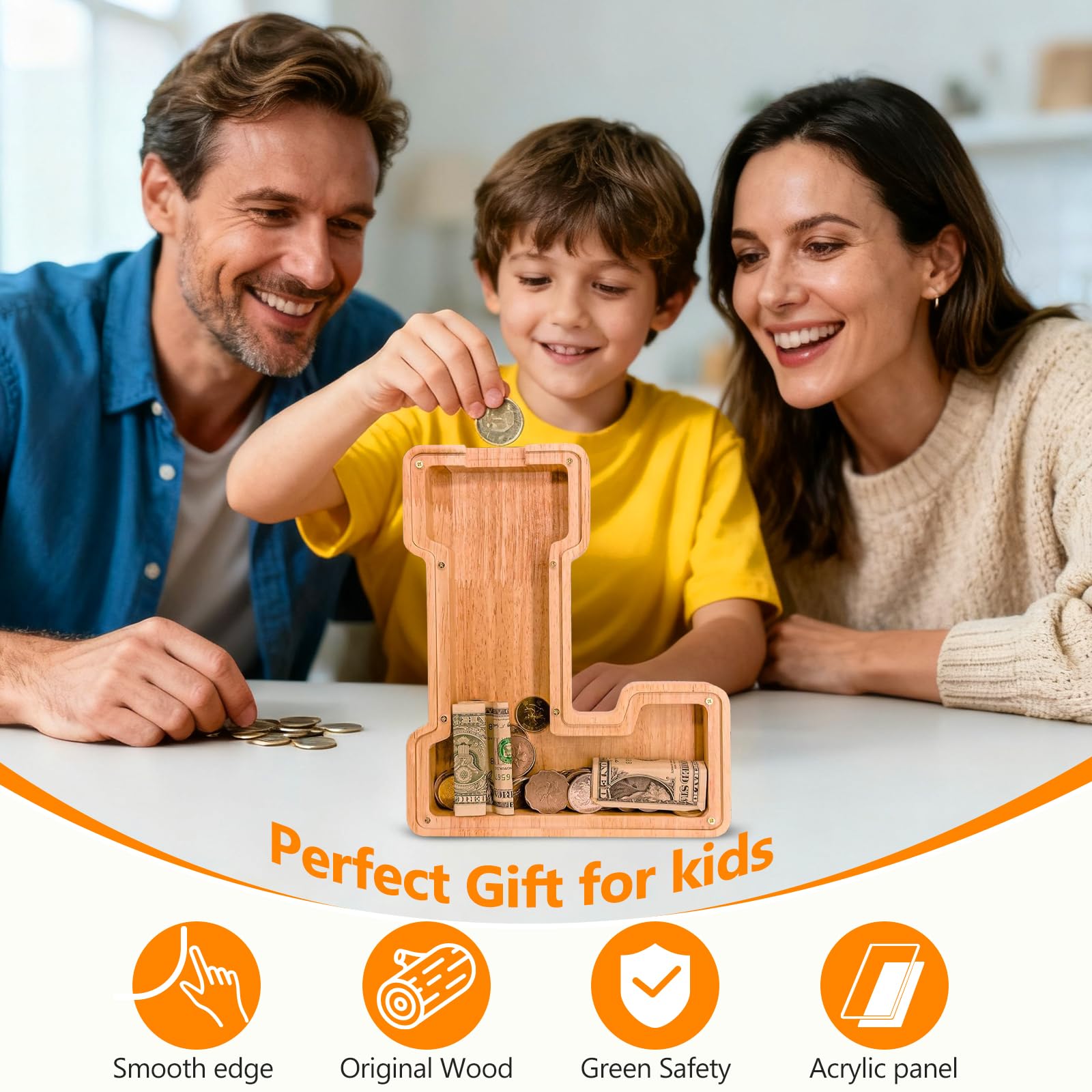 Wooden Letter Piggy Bank for Kids Initial Coin Bank for Boys and Girls First Name Personalized Savings Bank for Birthday Boys Girls Gift Piggy Bank for Kids (Wood S9-L)