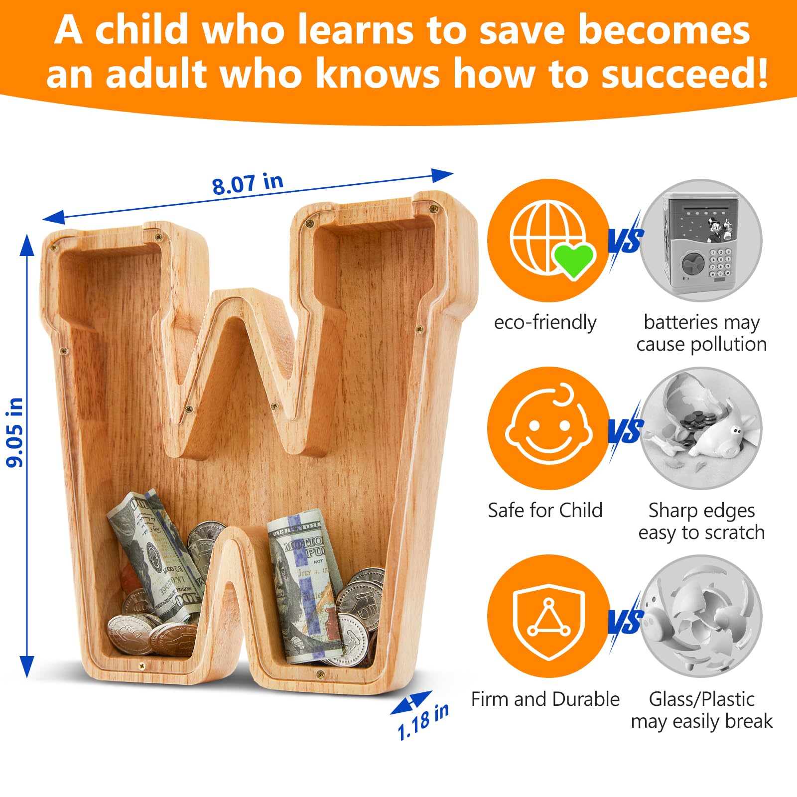 View compareWooden Letter Piggy Bank for Kids Initial Coin Bank for Boys and Girls First Name Personalized Savings Bank for Birthday Boys Girls Gift Piggy Bank for Kids (Wood S9-W)