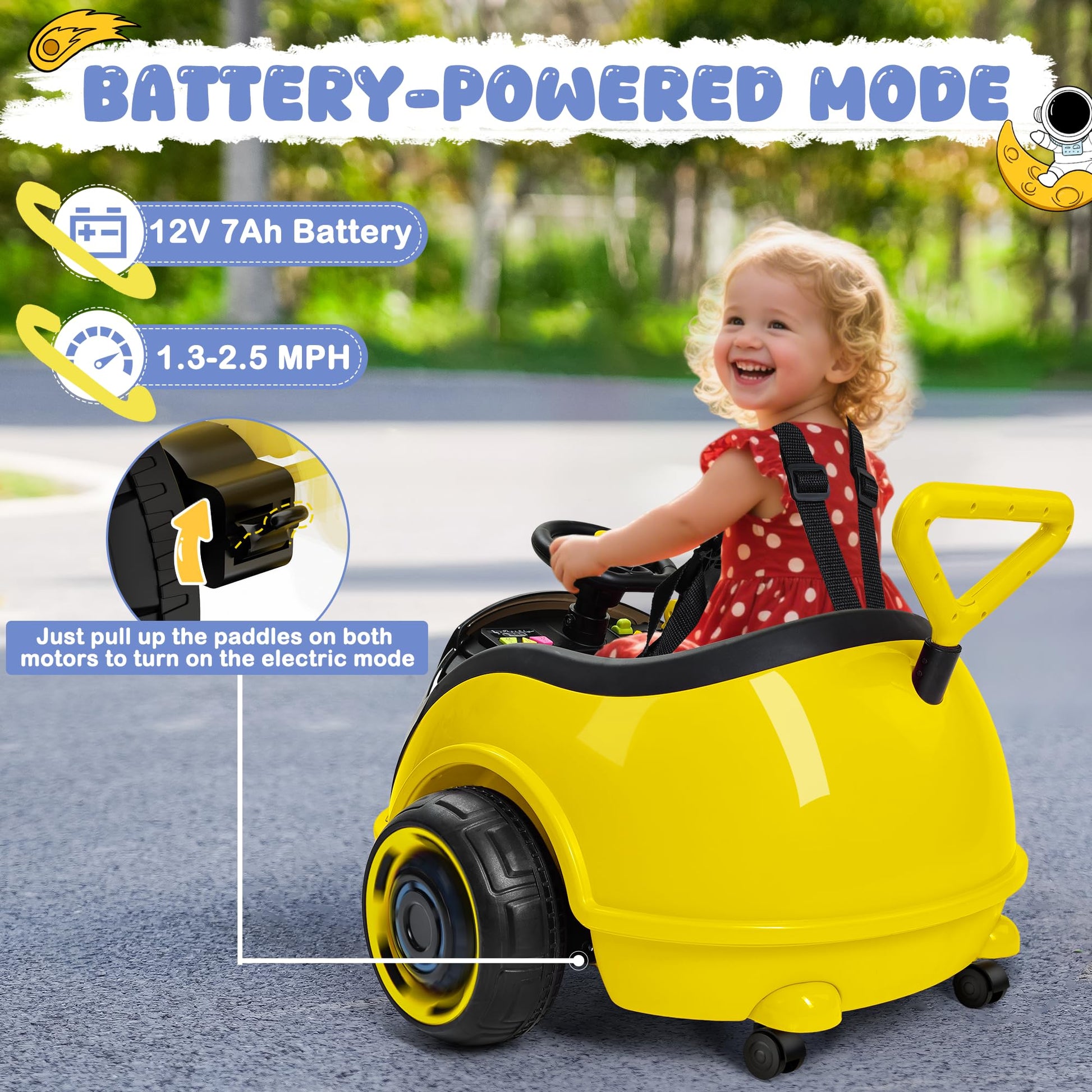 View compareAnpabo 3-In-1 Electric Push Ride On Car, 12V Kids Ride On Toy W/Remote Control, 360 Spin, 5-Point Safety Belt, Colorful Led Ligh
