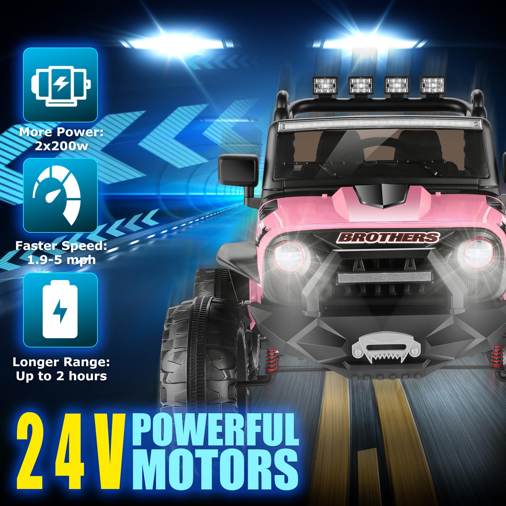 Hikole 24V Ride On Car Truck With Remote Control - 2 Seater, Powerful 2X200W Motor, Spring Suspension, 3 Speeds, Music Player, L