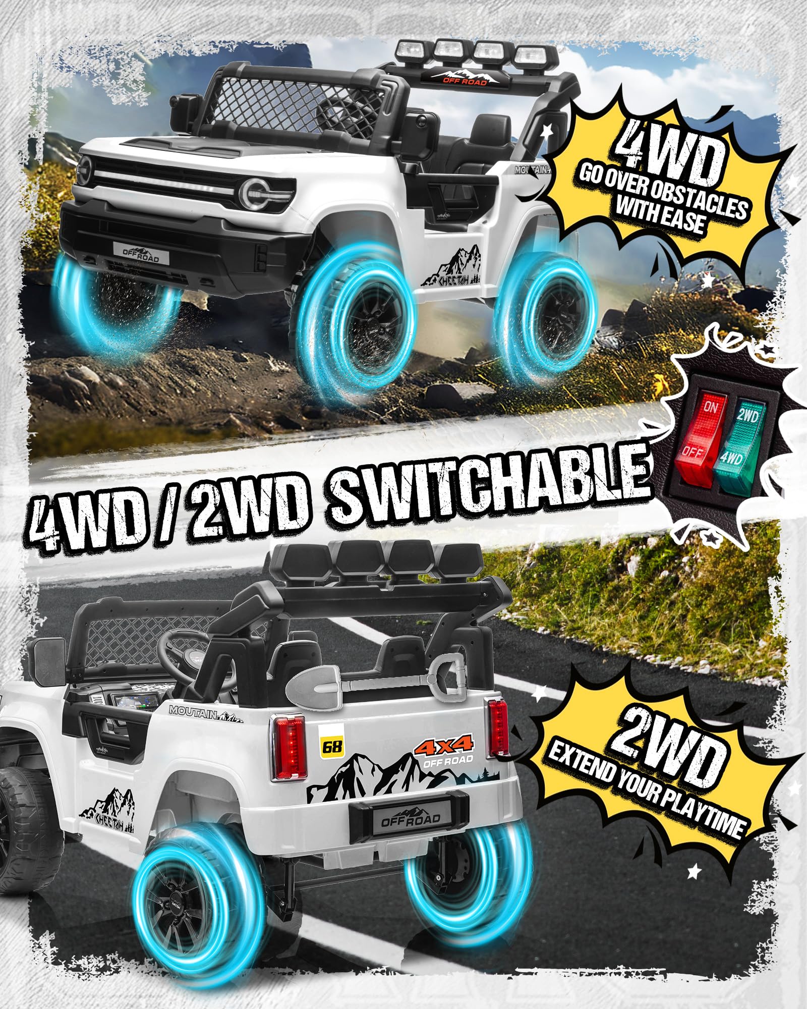 Letsgoride 24V Ride On Toys For Big Kids, 2 Seater Electric Car W/22'' Large Seat, Remote Control, Shovel, 4X200W Engines, 4Wd/2Wd Switchable, Truck Bed Storage, Ride On Truck Toy For Boy Girl, White