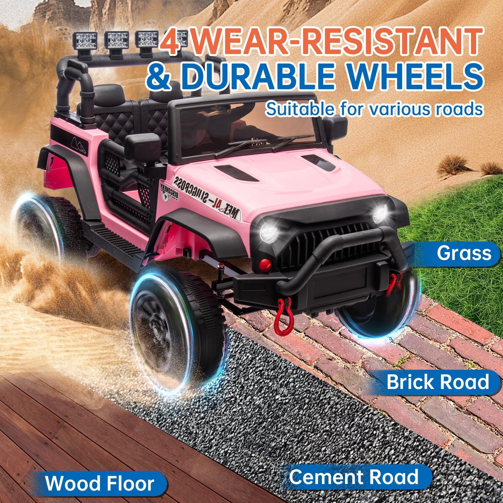 Okybaby 24V Kids Ride On Jeep Car, 400W Motor Ride On Toys W/Parents Remote Control, Electric Cars For Kids With 4-Wheel Suspension, Bluetooth, Mp3, Music, Led Light, Pink