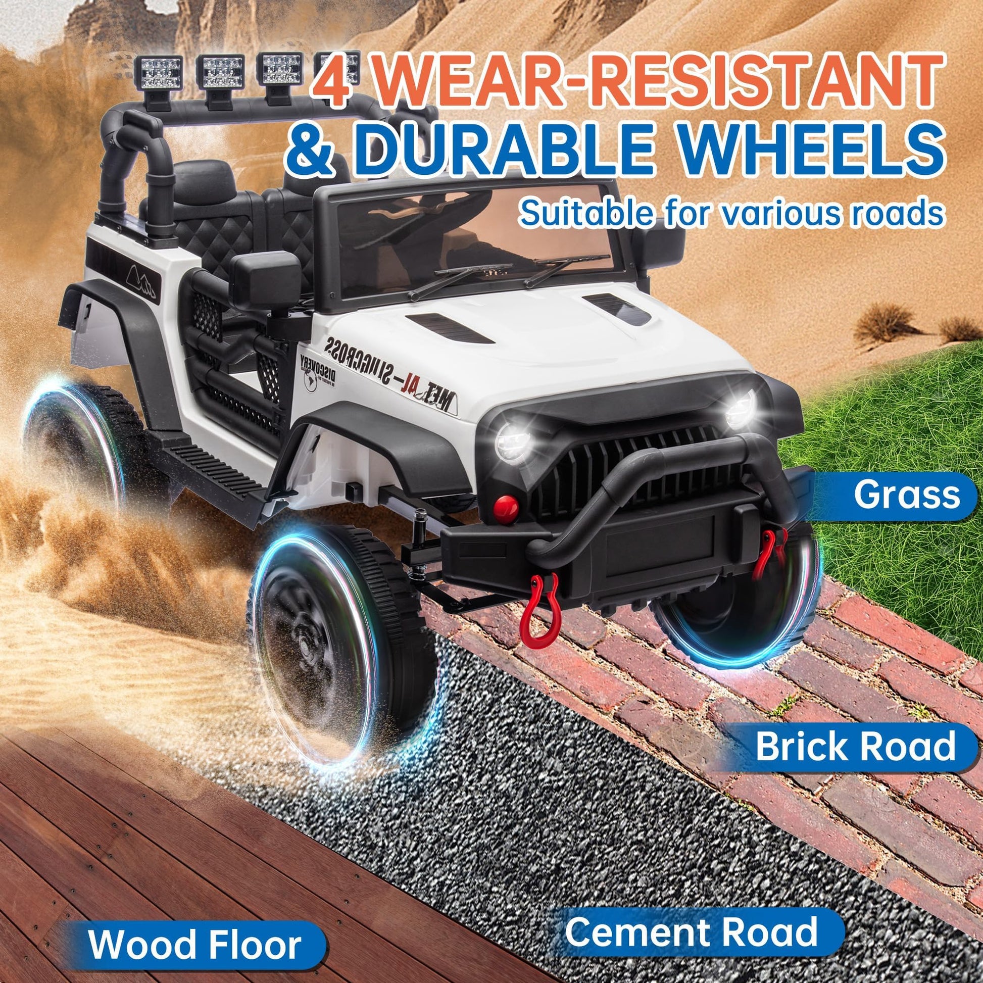 Okybaby 24V Kids Ride On Jeep Car, 400W Motor Ride On Toys W/Parents Remote Control, Electric Cars For Kids With 4-Wheel Suspension, Bluetooth, Mp3, Music, Led Light, White