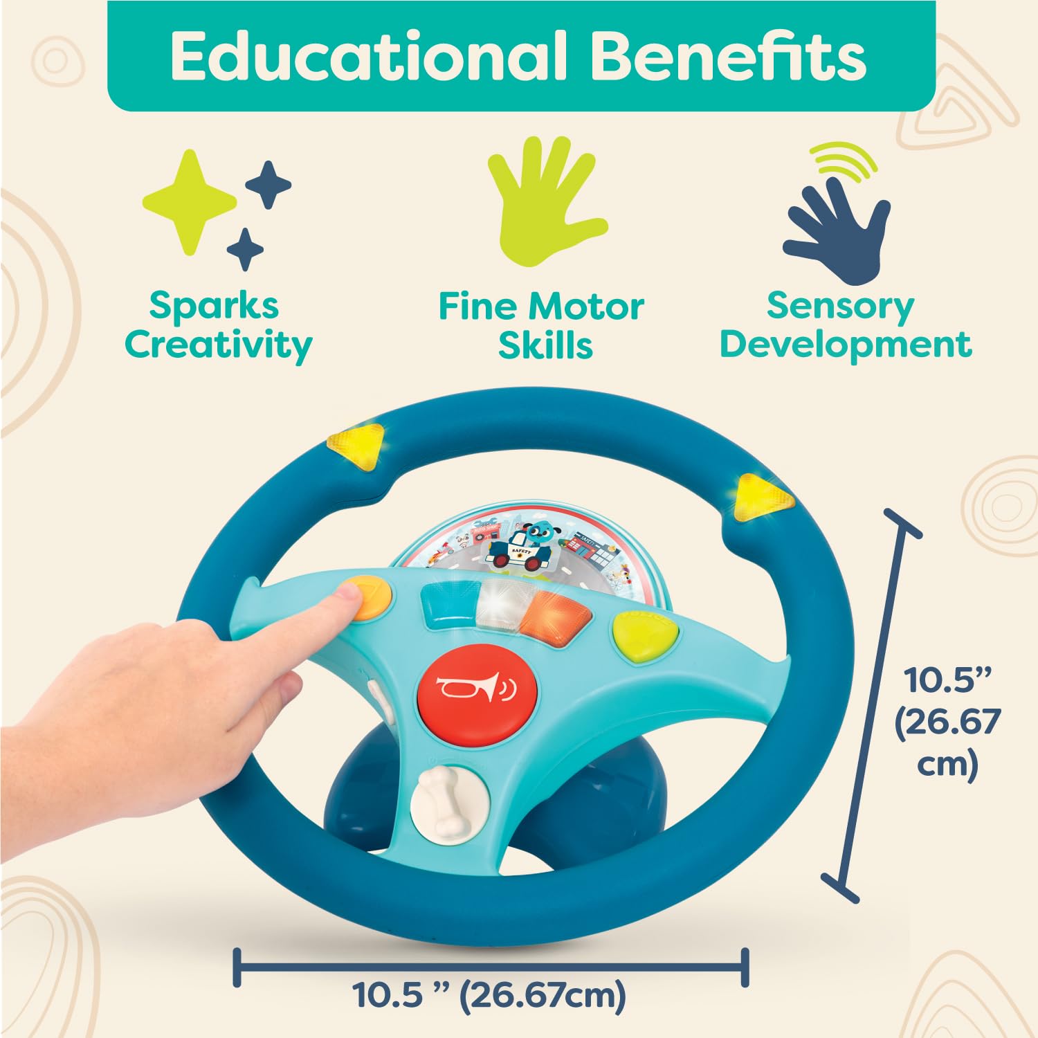 B. Toys Woofer'S Musical Driving Wheel - Pretend Play Steering Wheel With Music, Sounds & Lights For Toddlers, Kids 2 Years+