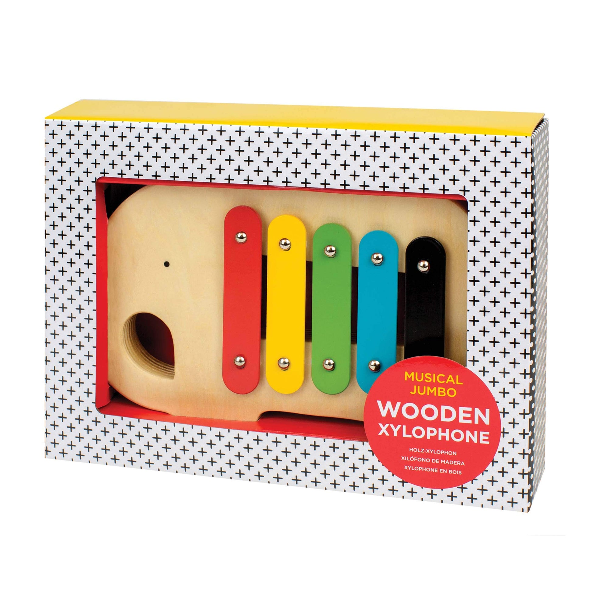 Product DescriptionThis Musical Jumbo Wooden Xylophone is a great way to introduce your little ones to harmony and rhythm through play. Five bright bars produce five sweet notes. Compact and easy to carry, the elephant trunk doubles as a handle. Made of FSC-Certified plywood. Includes an elastic hoop to safely store the wooden mallet. Ages 18 months+.From the Manufacturer