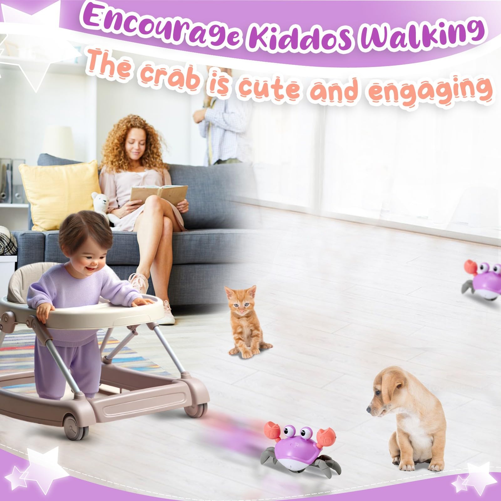 - Q: What features make this toy engaging for babies and toddlers? A: The Purple Crawling Crab Baby Toy features fun sounds, lights, and obstacle avoidance sensors that make it skitter and move away when approached. These elements create an entertaining experience that captivates not only babies but also pets and older children.