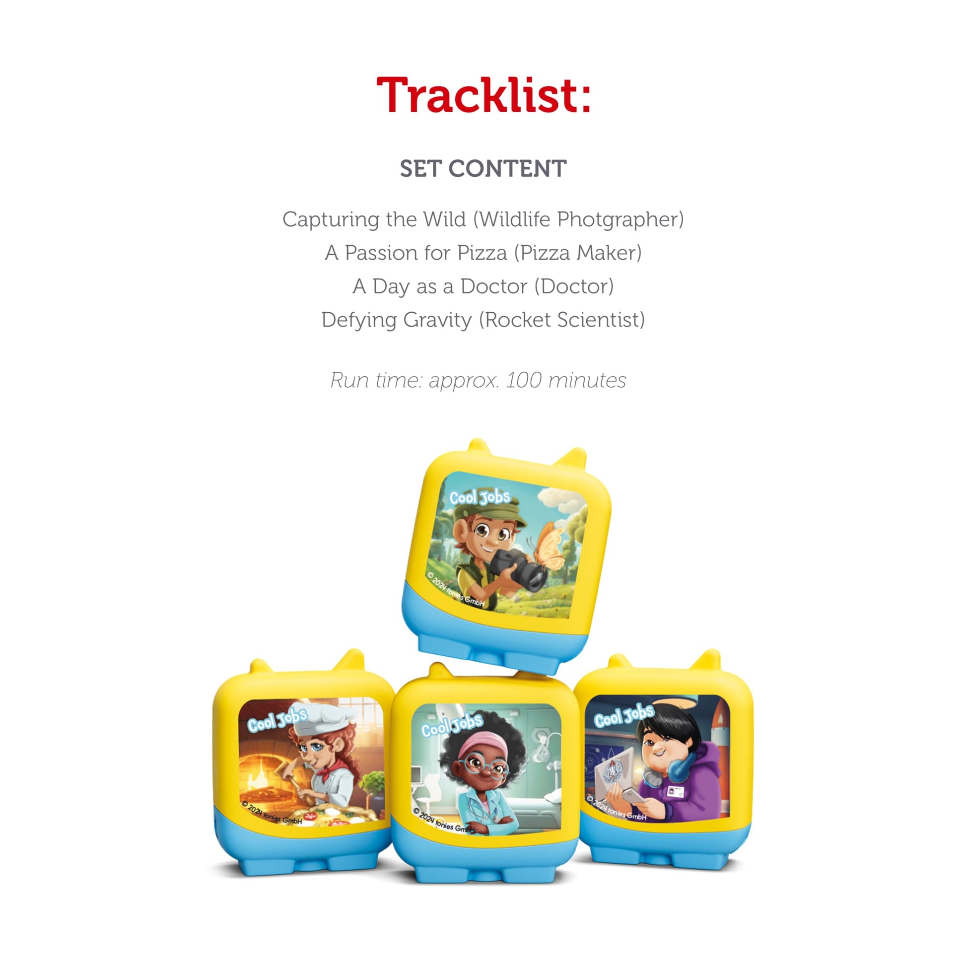 What are you curious about? The Clever Tonies line brings an edutaining and fascinating audio experience for growing listeners exploring science, arts, technology, history, and much more! Meet Dariana, a curious kid who wants to know what the future holds for her: Where will she work? What kinds of jobs are out there? How do you learn about what these jobs are? In this exciting series, curious kids get answers to all of these questions! Take a cosmic journey through the history of rocket science, get to know pizza in all its flavors, join Dr. Jackie on a day as a doctor, and learn all about the amazing world of wildlife photography. With a mix of history, fun facts and real interviews, this Clever Tonies set is a compact guide for all little job seekers. Engaging, entertaining and educational - learning has never been more fun!