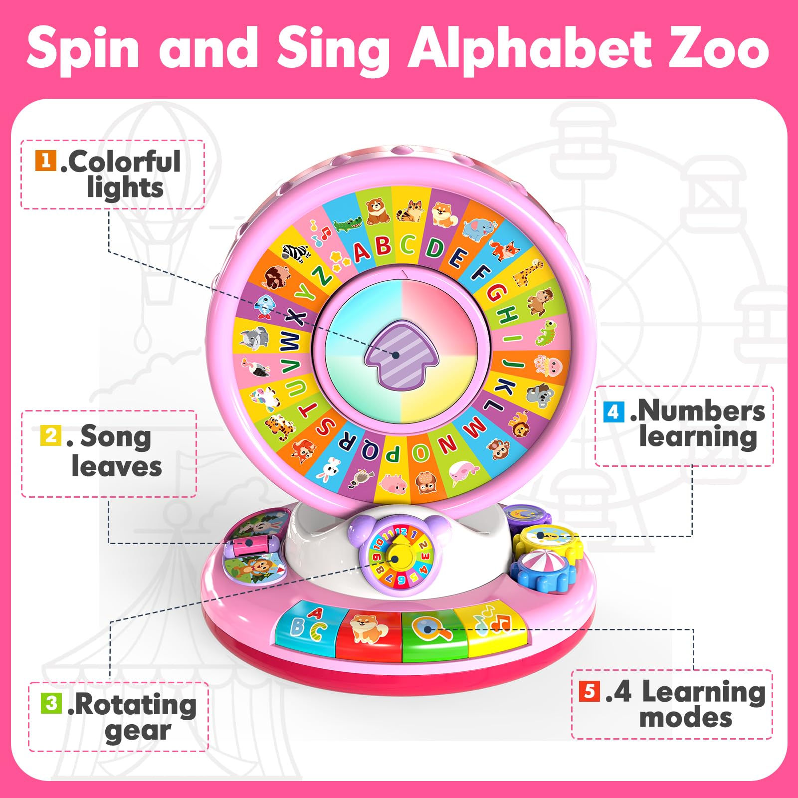 Toys For 1 2 3 Year Old Boy Girl, Musical Spin And Sing Alphabet Zoo, Learning Toys For Toddlers 1-3, Educational Interactive To