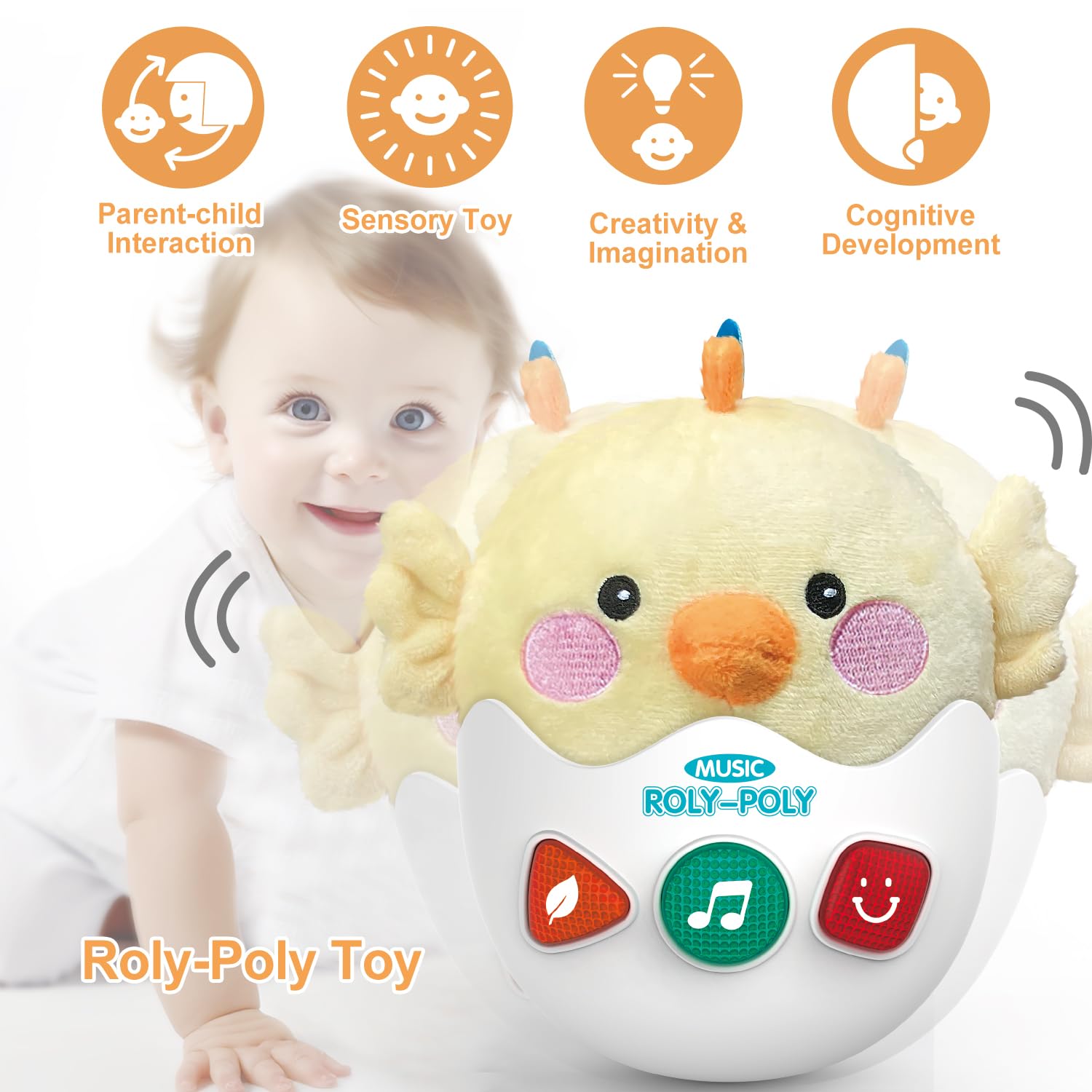 Wowohage Baby Toys 0-6-12 Months, Plush Chick Musical Toys, Cute Stuffed Animal Infant Toys With Light & Sounds, Roly-Poly Senso