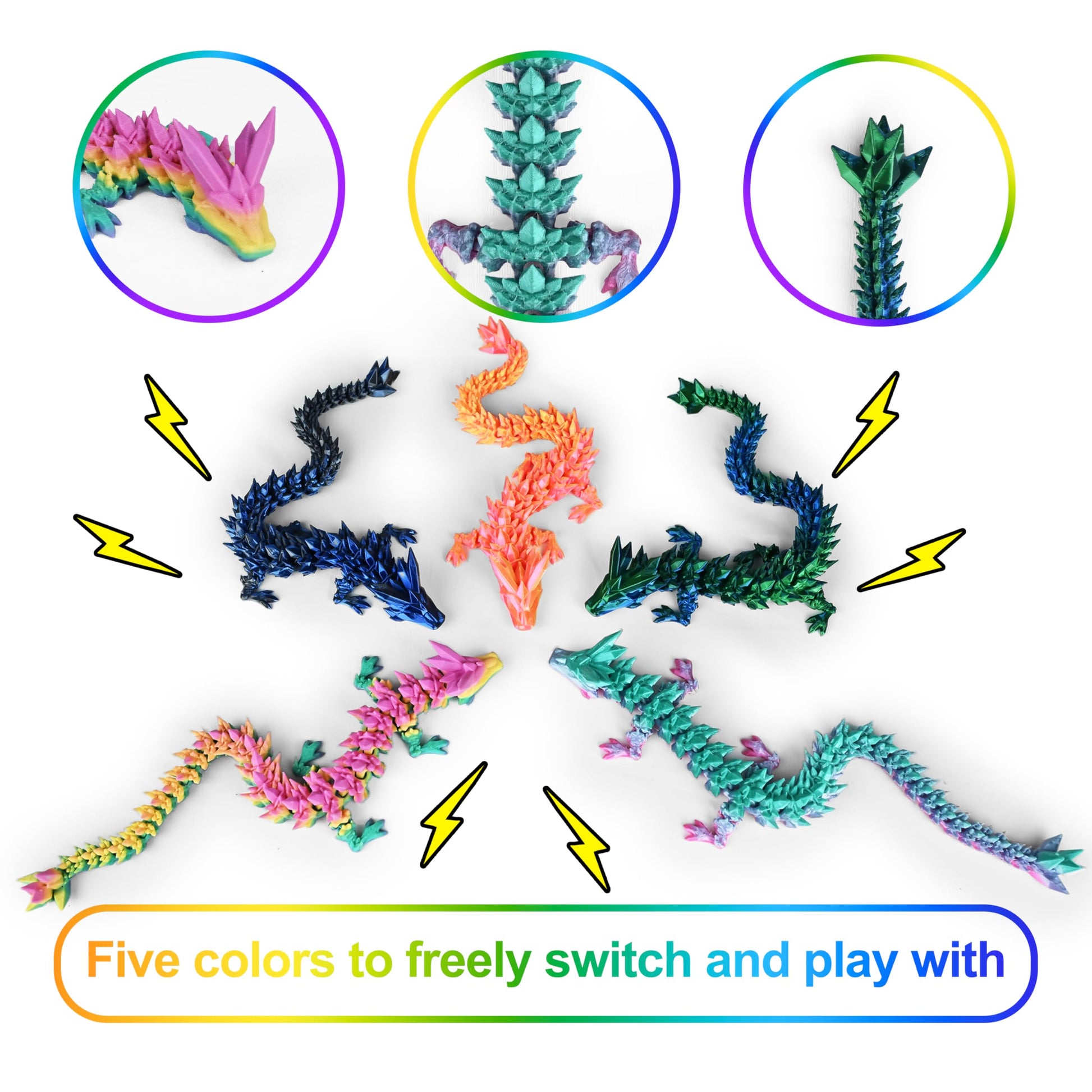 5PCS 12 3D Printed Dragon Set Articulated Crystal Dragons Dragon Desk Toys 3D Printed Animals Cool Unique Birthday Gifts for Teen mature-themed Novelty Christmas Stocking Stuffers Gadget for Men Boy